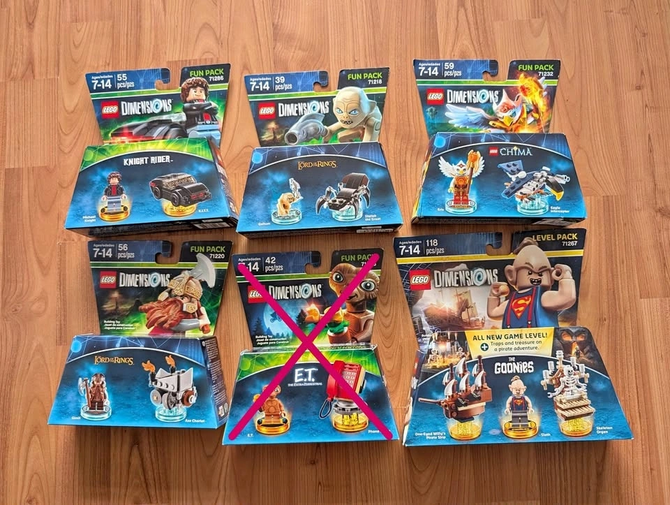 Various Lego Dimensions sets. All sets are new and sealed. Selling the lot for $150. Pick up on Maplewood Ave M6C 4B4. For single buys, prices are as follows: Gollum 71218 $40, Gimli 71220 $20, Chima 71232 $15, Goonies 71267 $70, Knight Rider 71286 $30.
