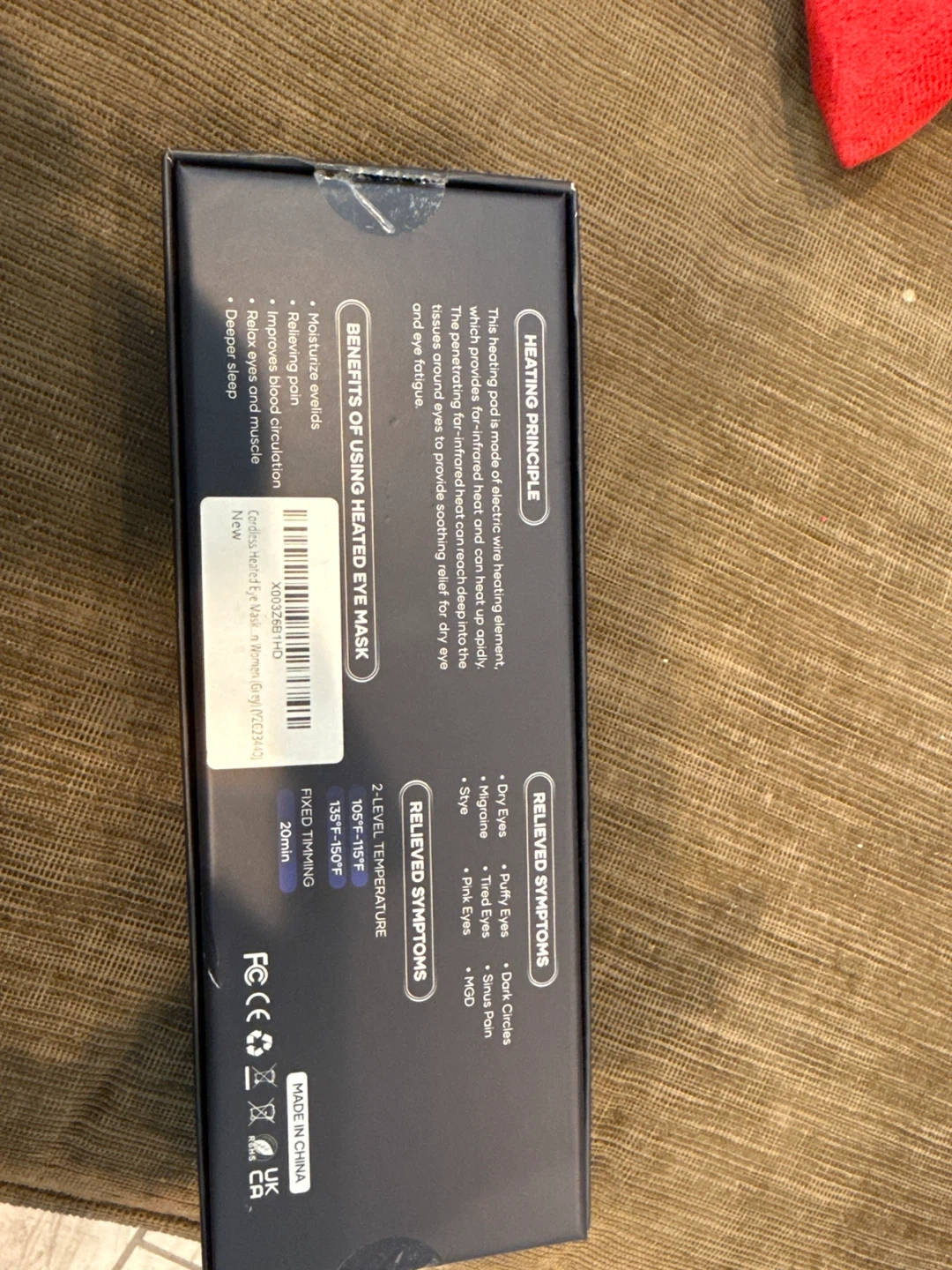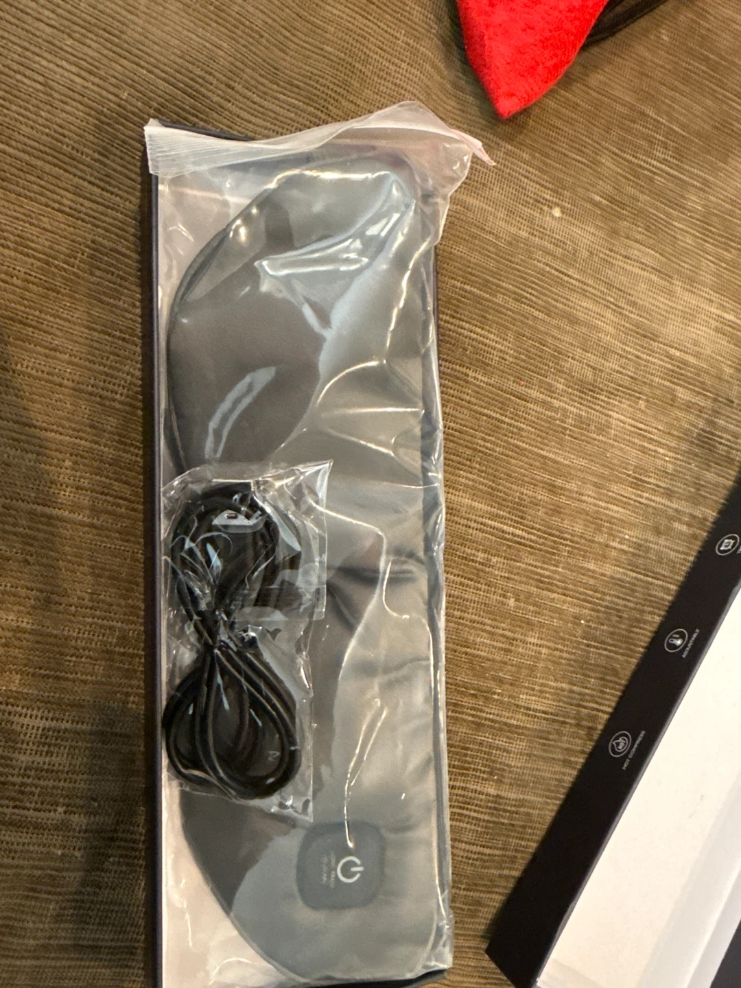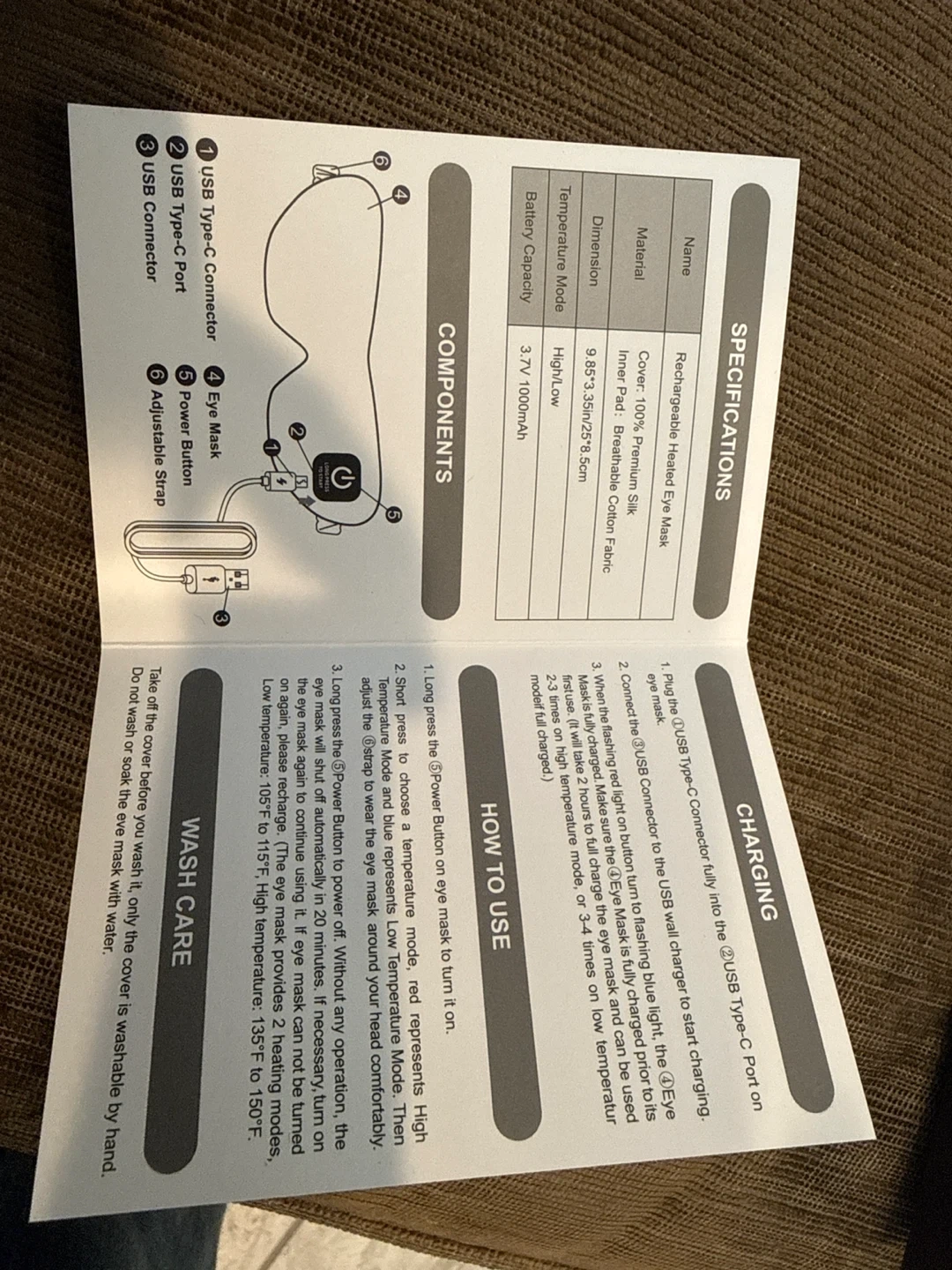 This rechargeable heated eye mask is designed for comfort and relaxation. It features 100% premium silk, a breathable cotton inner pad, and adjustable straps. It offers 100% blackout light and no pressure on your eyes, making it great for a deep sleep. It's breathable and lightweight.