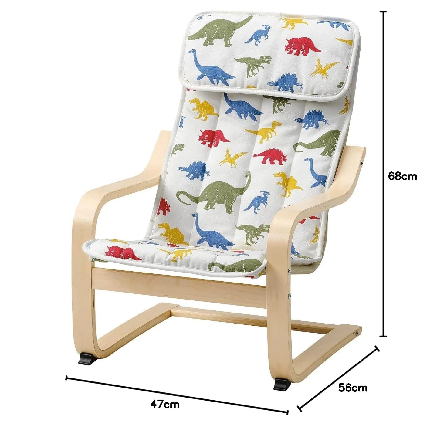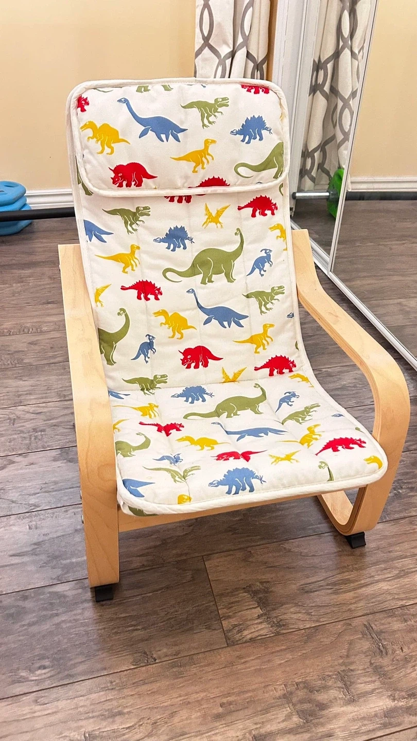 * Name: POÄNG children's armchair, with dinosaur pattern cushion
