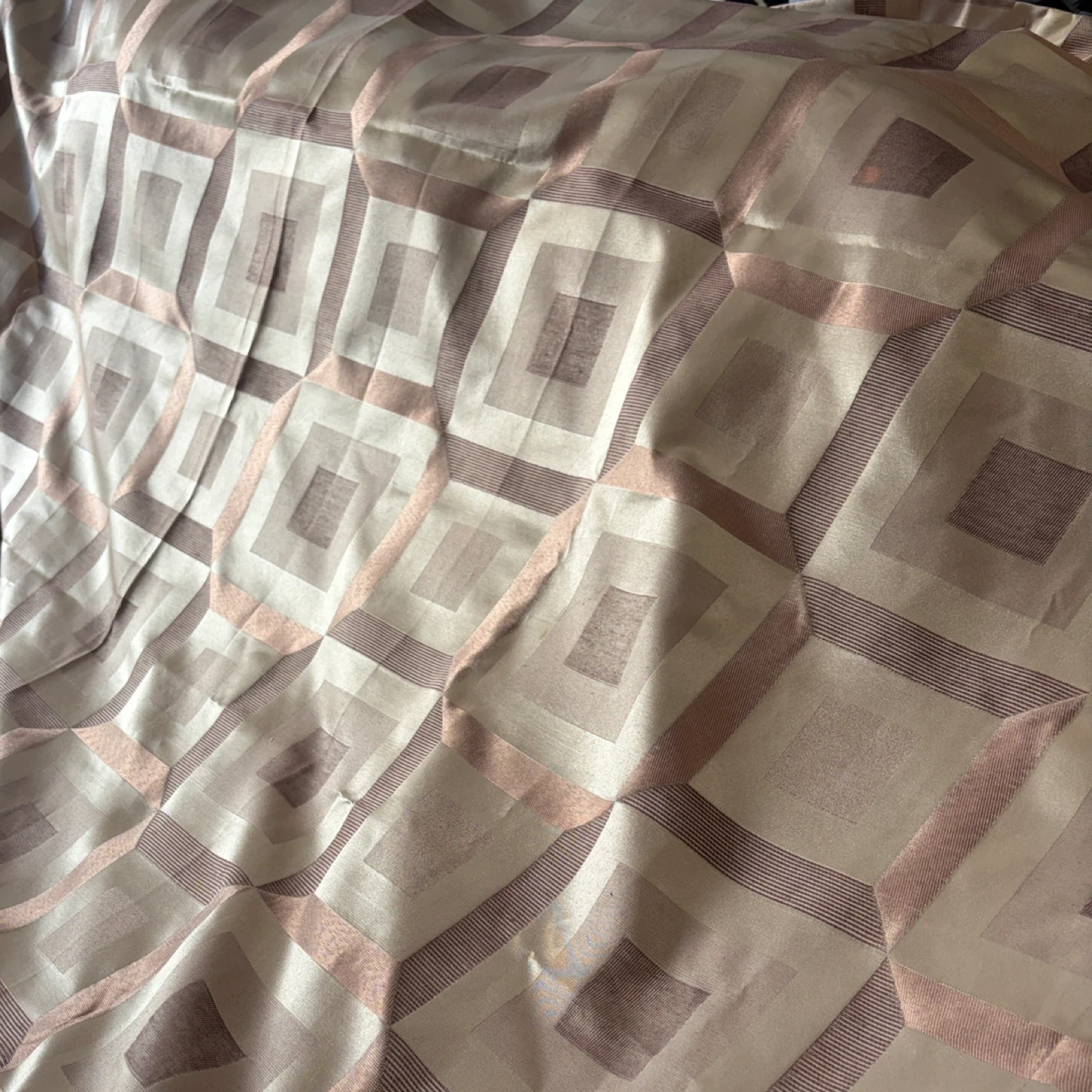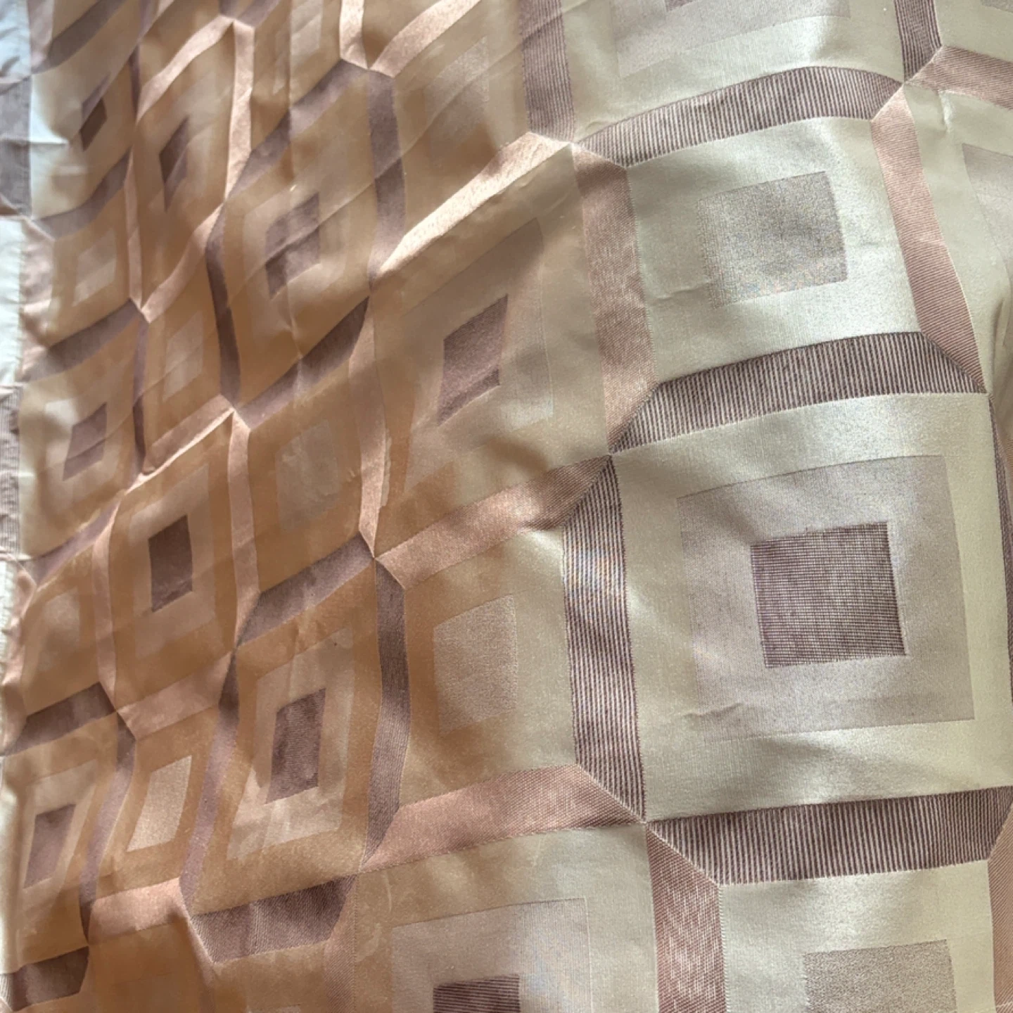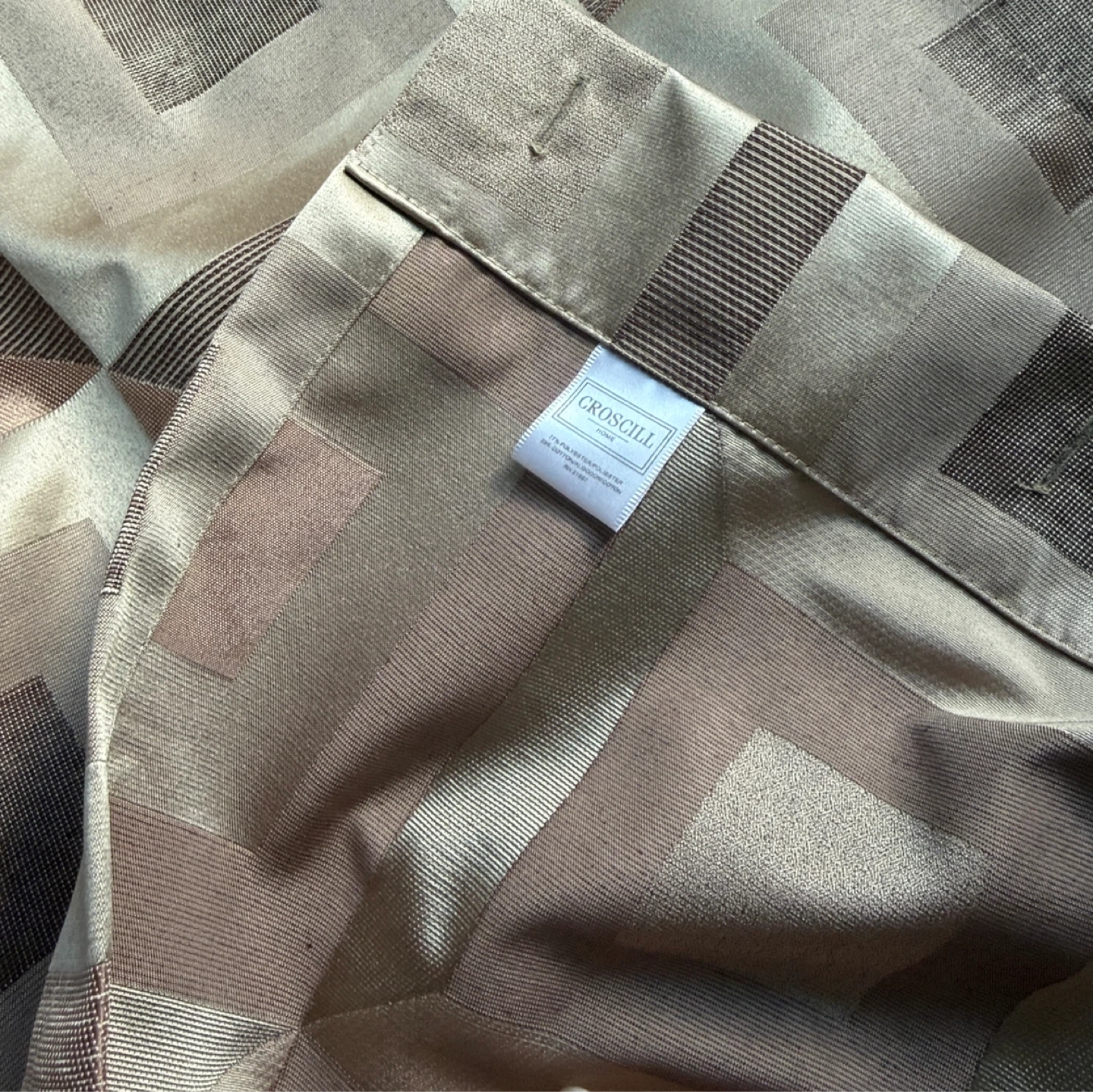A special find — Croscill Jacquard square geometric pattern bronze gold Shower curtain. Beautiful thick jacquard fabric is in perfect condition and has holes at the top for the curtain rings. Let me know if you have questions!