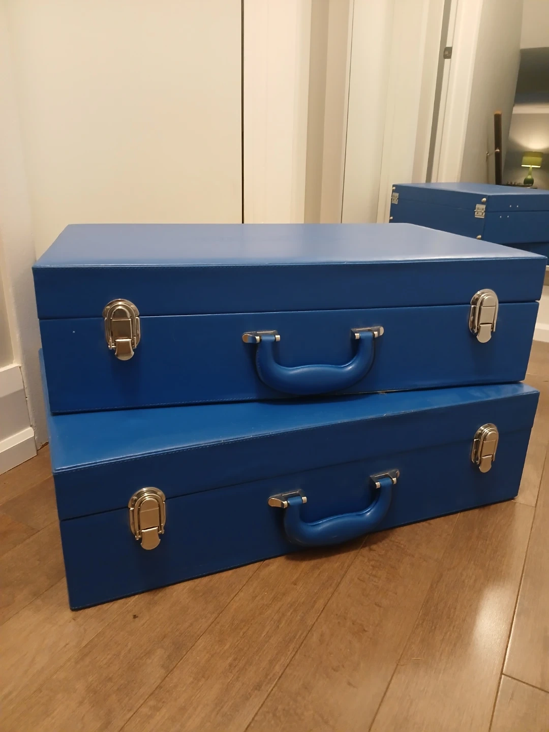 60$ for both briefcases. Model number J5280. It was manufactured in August 2005 by Pengfri Leather Co. Ltd. The case features a grey interior lining and silver clasps. Looking to sell both at the same time.