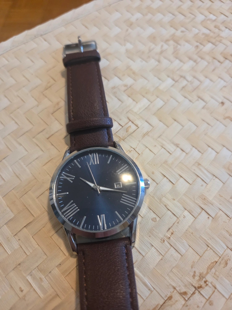 Selling an Accutime Watch Corp GWC1022M! The watch has a brown leather strap and a stainless steel caseback. It's a stylish and functional accessory!