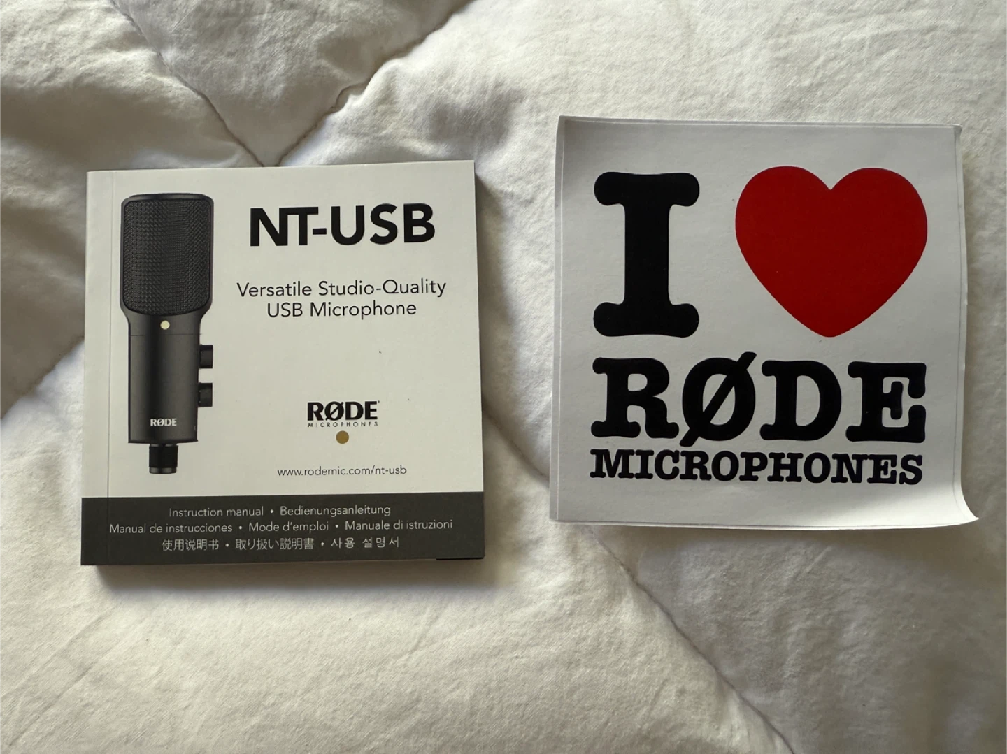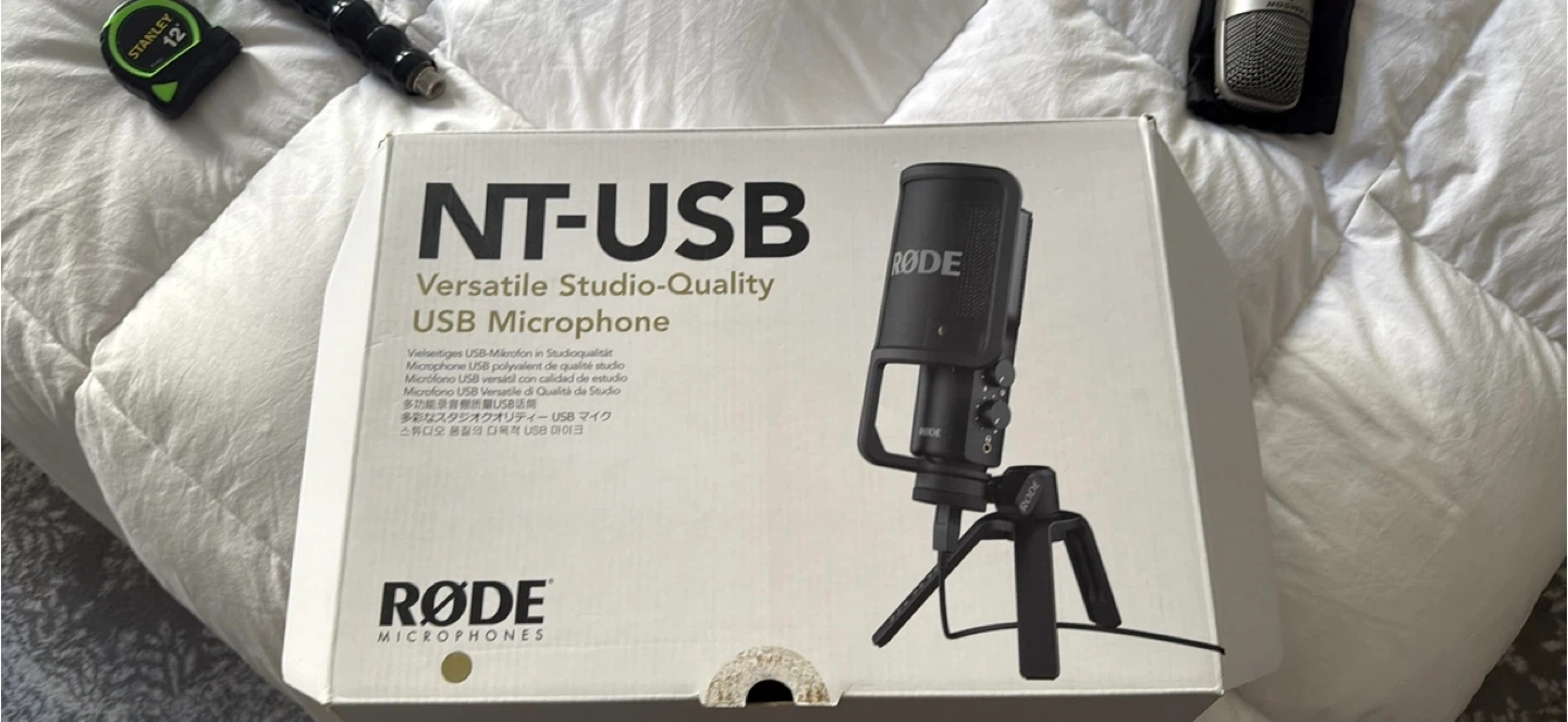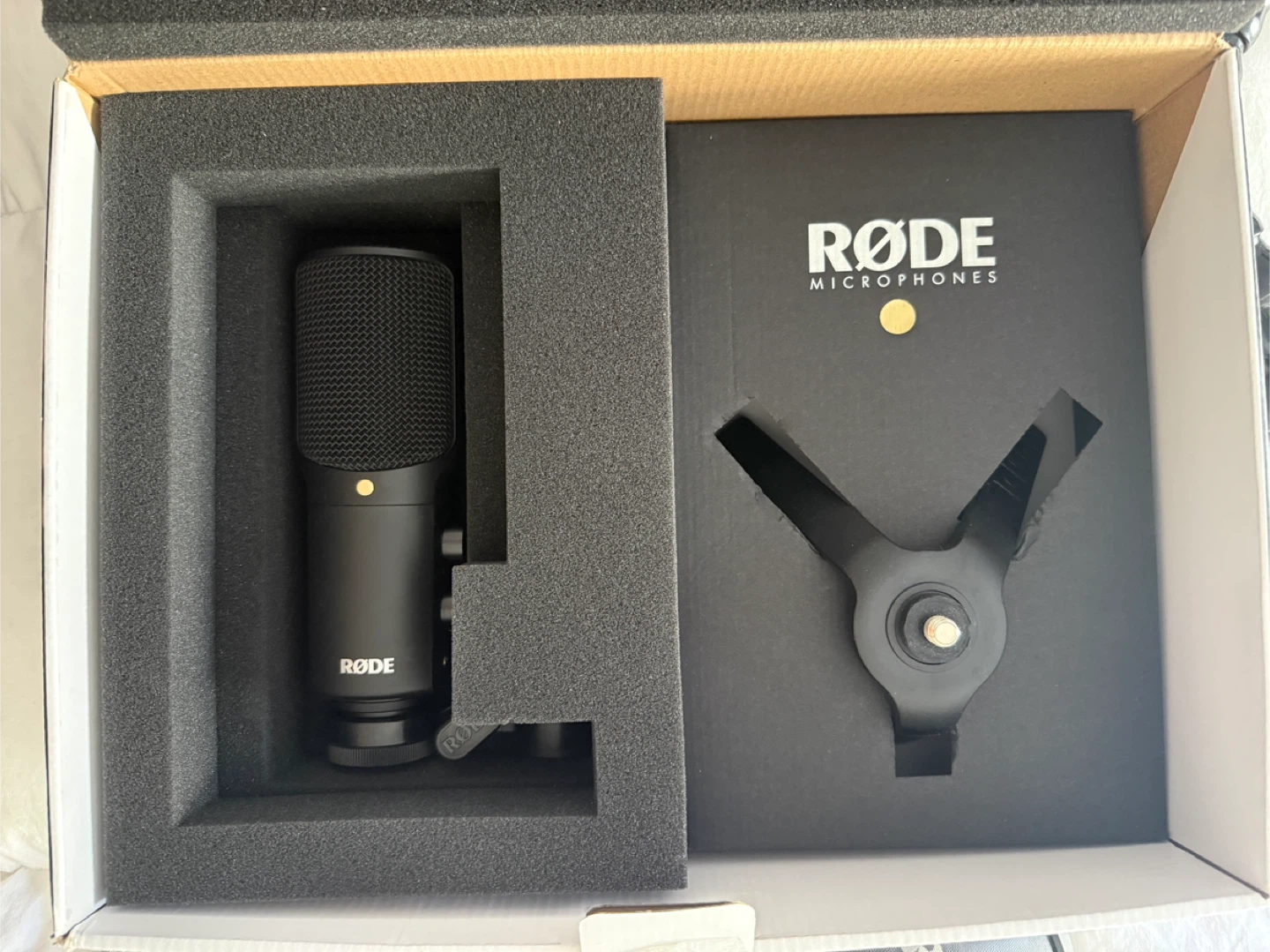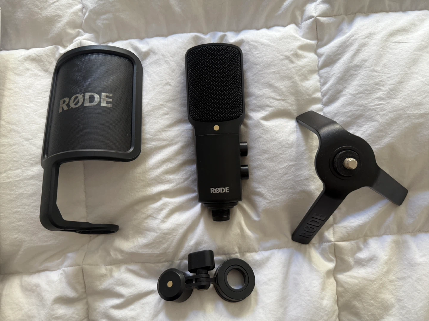 This RØDE NT-USB microphone is a great for studio-quality mic. I’ve been using it for voiceover and all my clients are happy with the sound. It's a USB microphone that includes a pop filter and a desk stand.