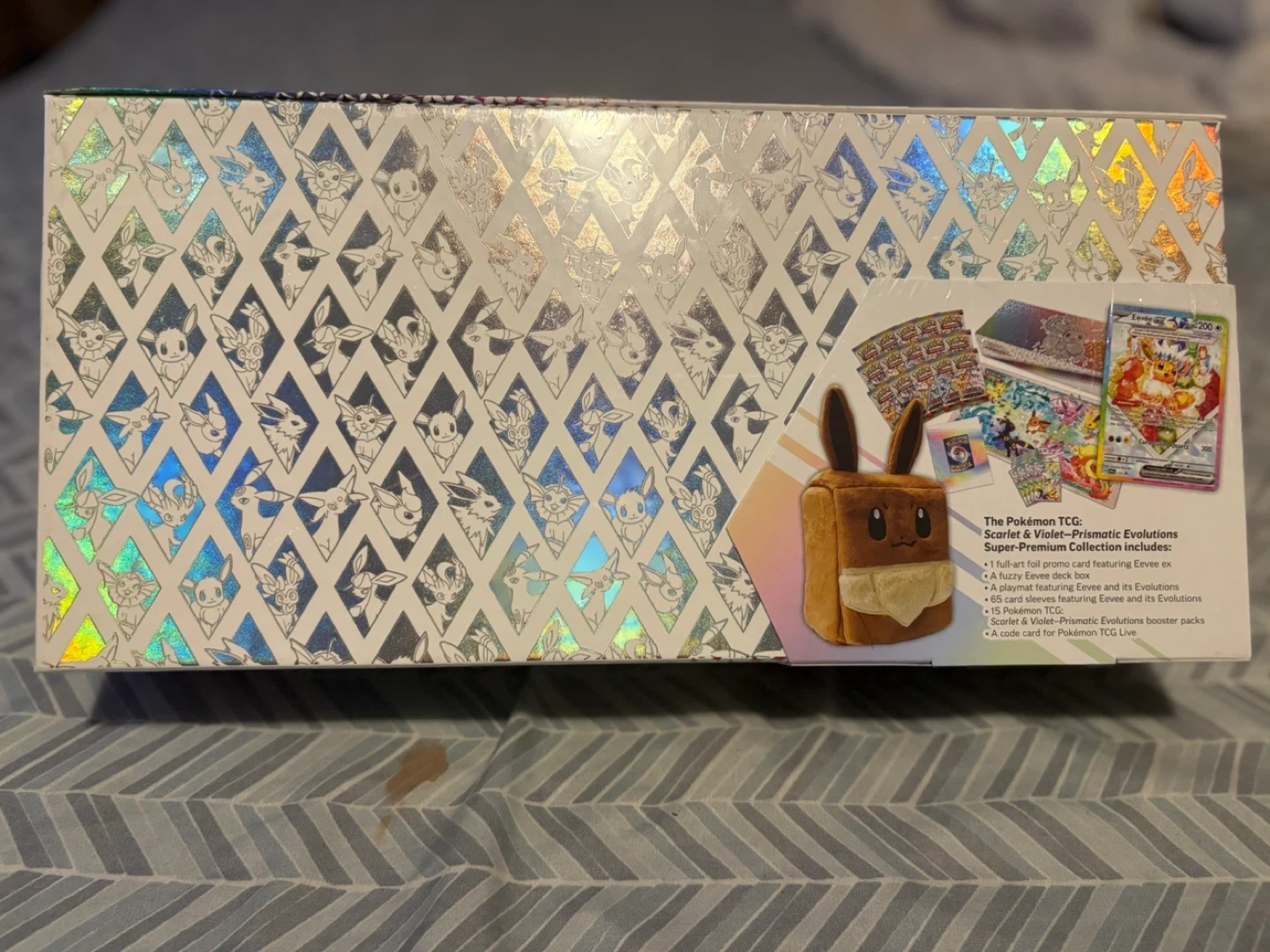 10Selling a Pokemon TCG Scarlet & Violet Prismatic Evolutions Super-Premium Collection! This set includes a full-art foil promo card featuring Eevee ex, 65 card sleeves featuring Eevee and its Evolutions, a playmat featuring Eevee and its Evolutions, and Scarlet & Violet-Prismatic Evolutions booster packs Also comes with a code card for Pokémon TCG Live