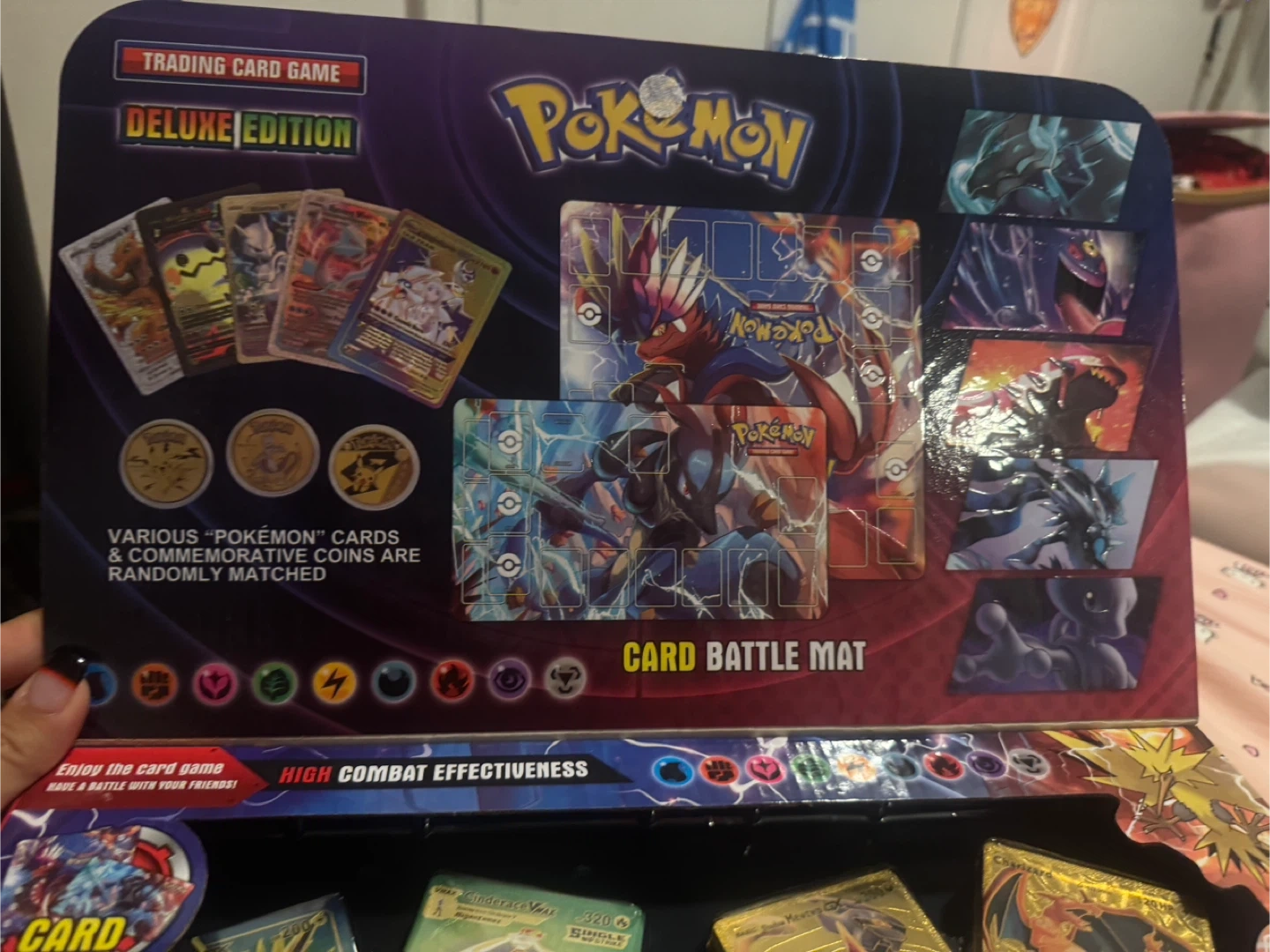 Selling a Pokemon Trading Card Game Deluxe Edition! This set includes various Pokemon cards and commemorative coins that are randomly matched. It also comes with a card battle mat for an enhanced gaming experience