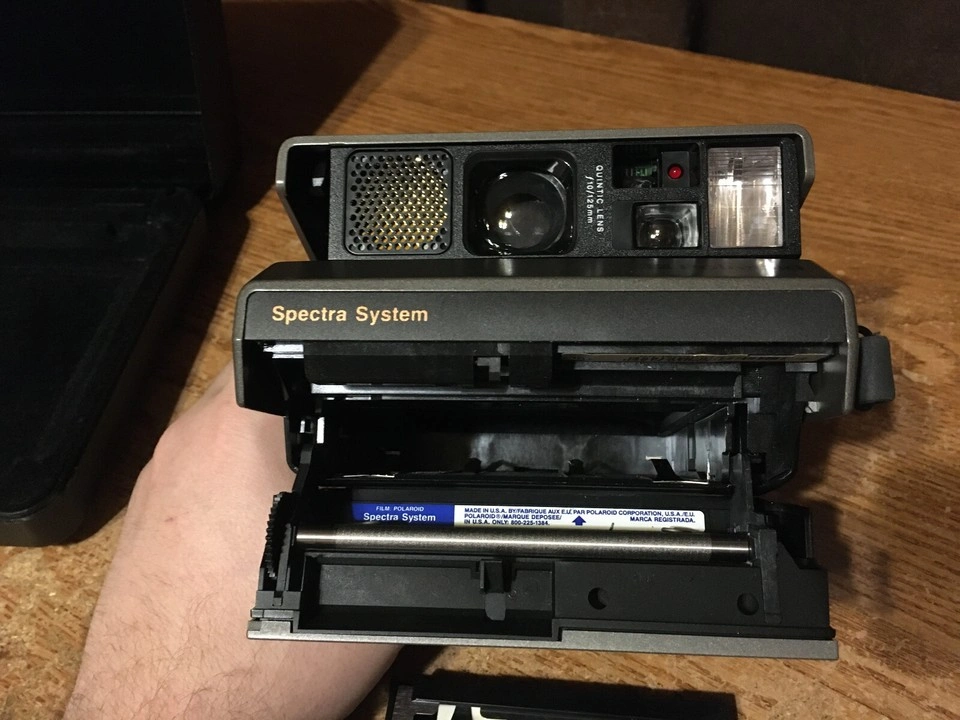 Polaroid Spectra System instant camera. Comes with a carrying case. You can take photos, develop them, and then have the pictures right away for safekeeping or display. Case in camera in great condition pick up at house