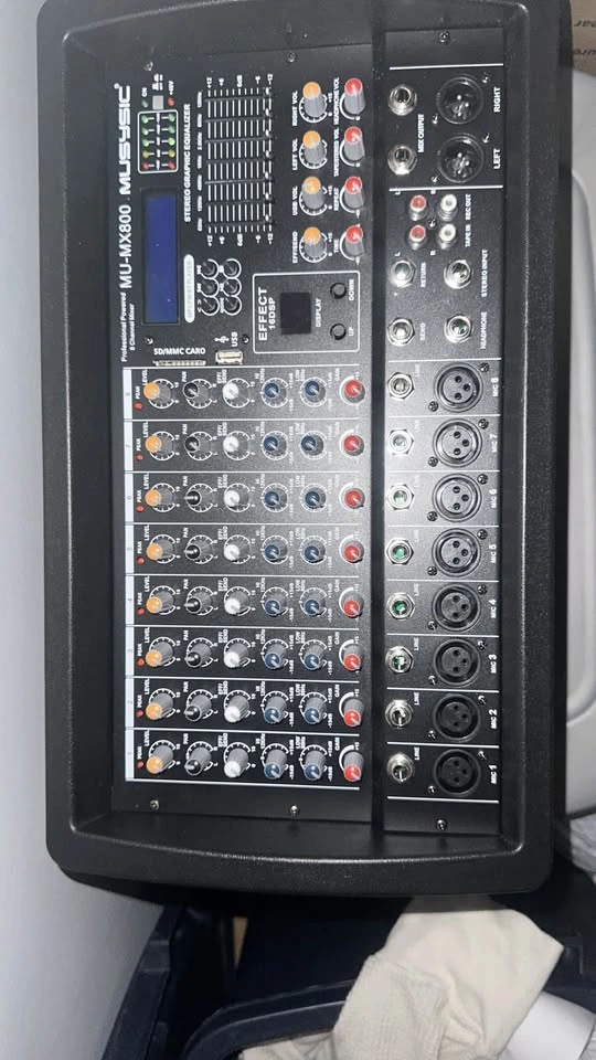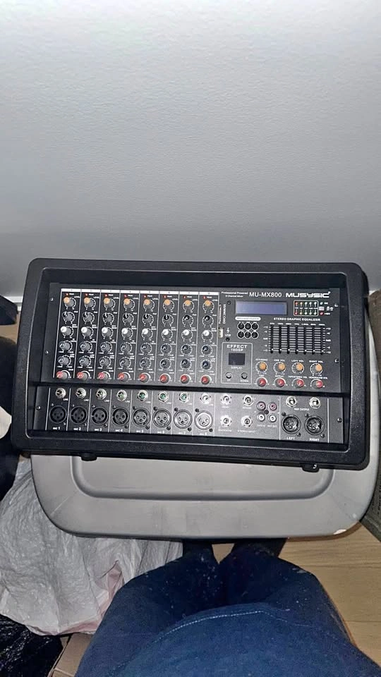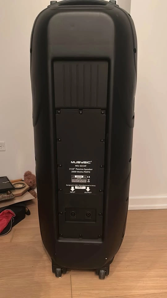 Portable PA system powerful amplifier with two extremely powerful speakers pushing 5000 W of good music. It comes with the cables, amplifier two speakers and two cordless mics. Brand new right out the box. perfect for parties, picnics, or any social events . Has wheels and easy to maneuver around.