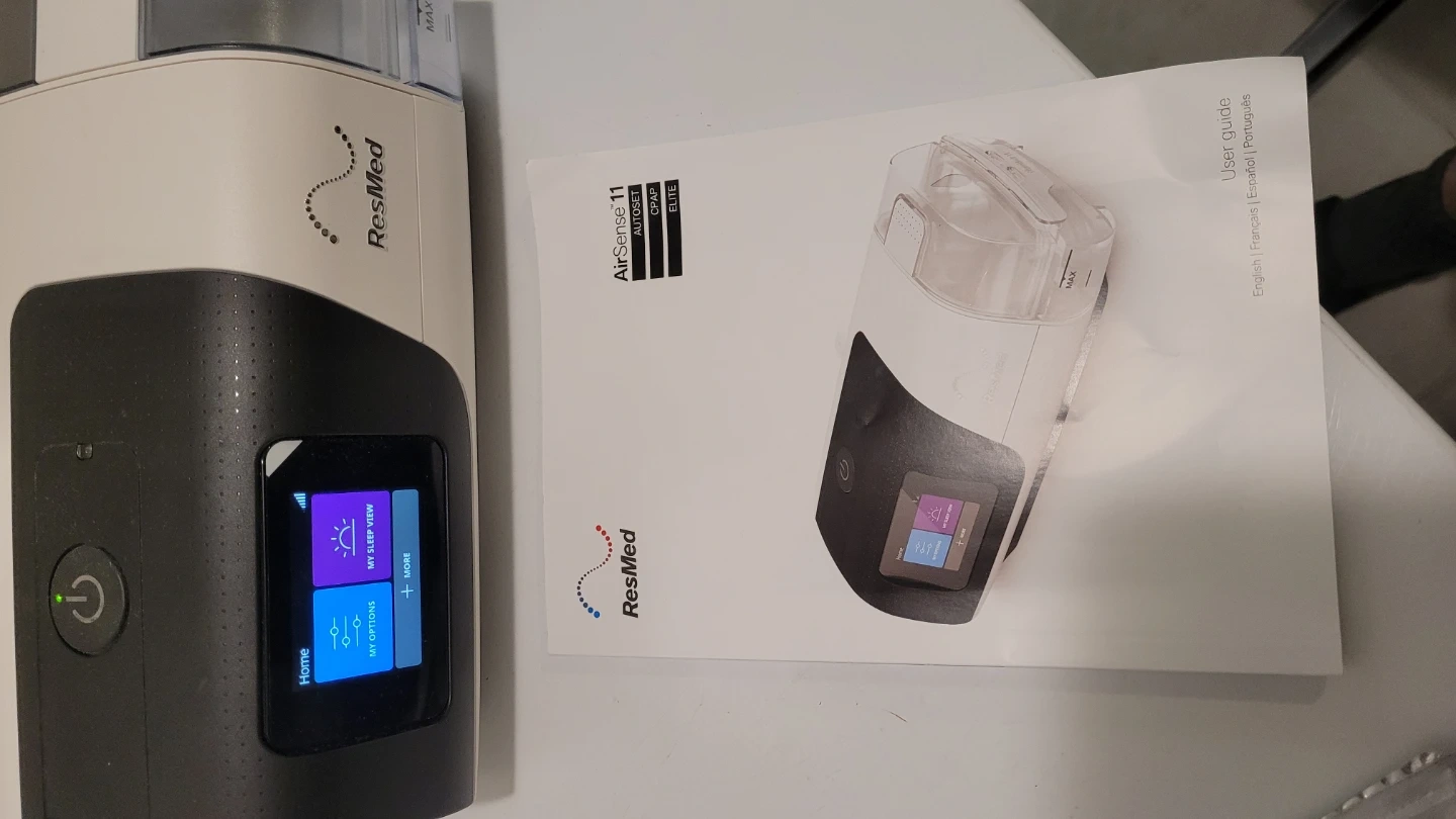 This ResMed AirSense 11 CPAP machine is in good condition. It includes the humidifier, tubing, and various mask sizes (S, M, W). The device has 1766.0 run hours recorded. It's a great option for anyone needing sleep apnea therapy.
