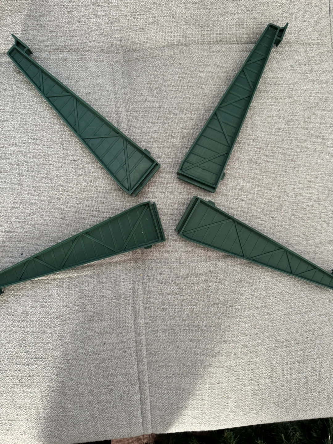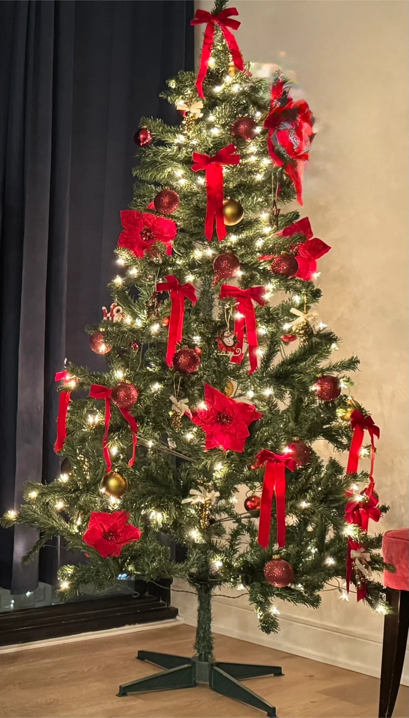 Sections for an artificial Christmas tree. Includes the main tree parts and a green metal stand. Branches are hinged for easy setup. Perfect for creating a festive holiday display!