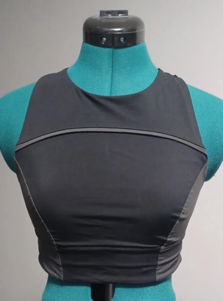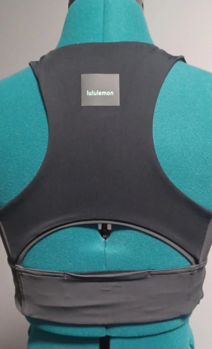 This is a Lululemon women's sports bra in black. It is from their hiking collection and was made for swimming and hiking. Perfect for the outdoorsy type! Also has an additional pocket in the back. Size 6 and never been worn.