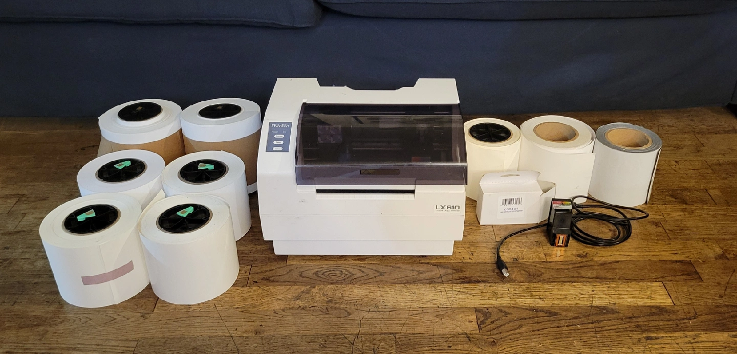 108Selling a Primera LX610 Color Label Printer. It comes with rolls of labels and the necessary cables. Perfect for printing custom labels for your products or projects! missing green flat round disc and the charger that connects it to the outlet original price $2,695