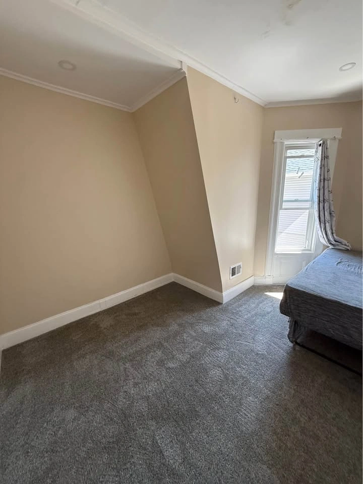 15* NO FEE * Private room in a shared apartment. 2nd floor. 1 bathroom shared with 2 people. There are pets in the house, a dog and a cat (NO MORE PETS ALLOWED). Rent and deposit required. $850 monthly rent. $500 security deposit NO CHILDREN. Utilities shared. Heating. Quiet roommates. Room 1: Woman, 32 years old. Room 2: Man, 32 years old. Room 3: Available. No curfew. Access to kitchen. Available October 30 -hablo español-