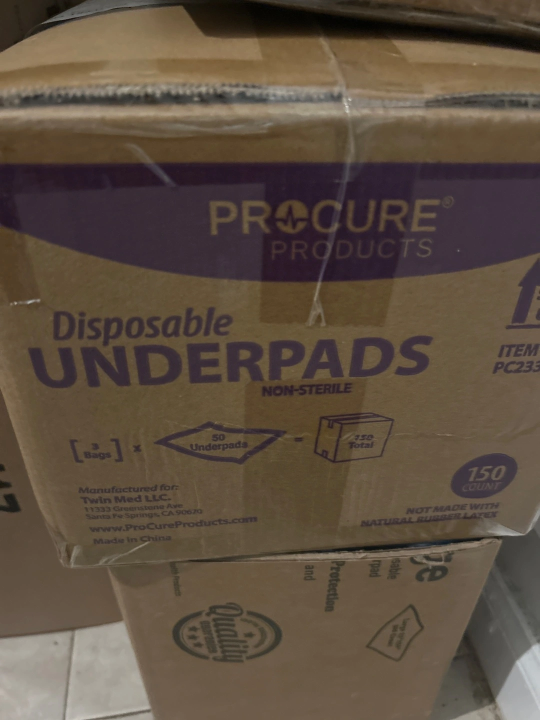 Selling a box of Procure Products Disposable Underpads. This box contains 150 non-sterile underpads. Great for various uses!