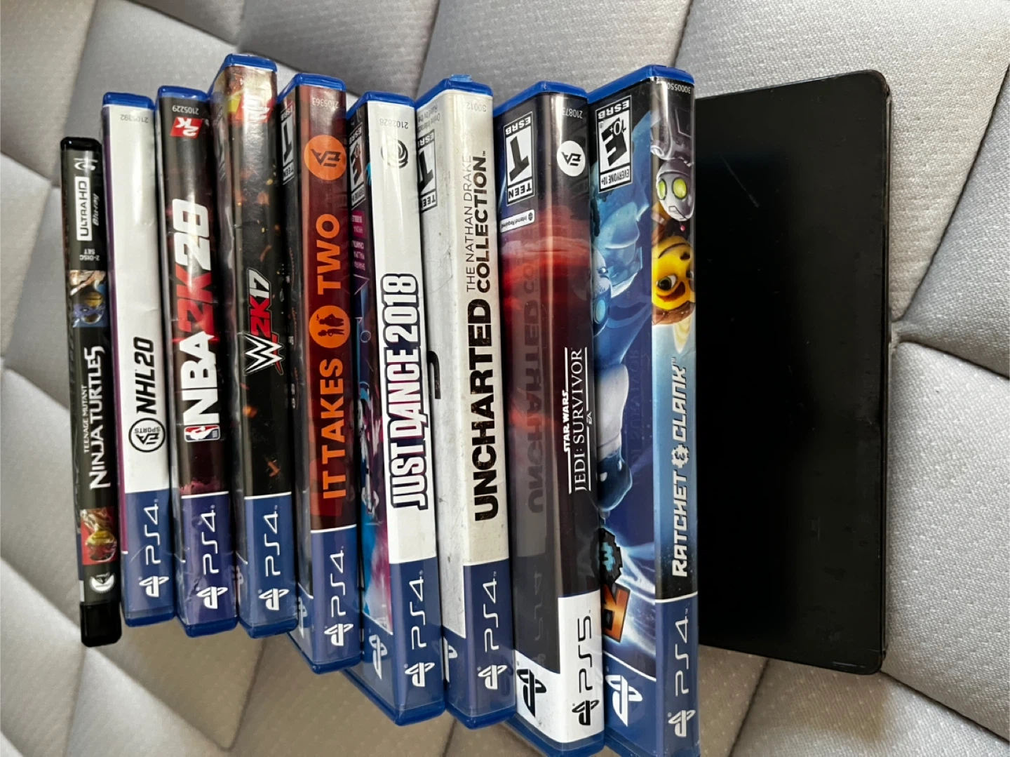 23Selling a bundle of PS4 and PS5 games! Includes: - Teenage Mutant Ninja Turtles - NHL 20 - NBA 2K20 - WWE 2K17 - It Takes Two - Just Dance 2018 - Uncharted: The Nathan Drake Collection - Star Wars Jedi: Survivor - Ratchet & Clank