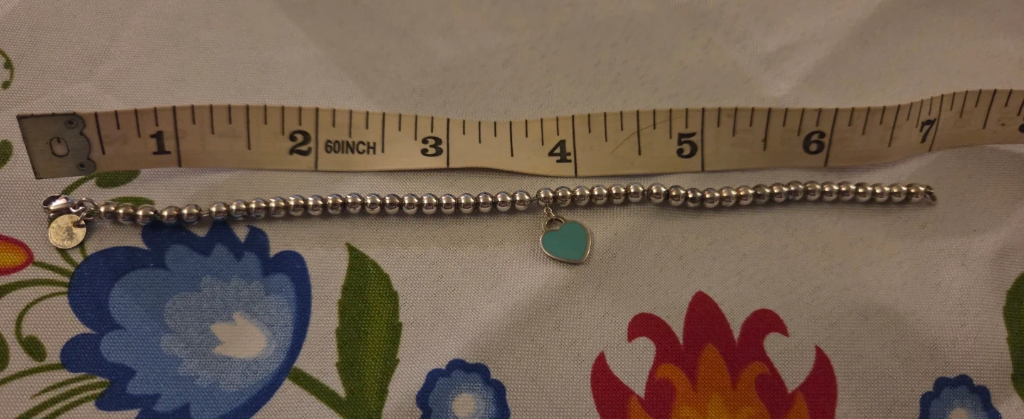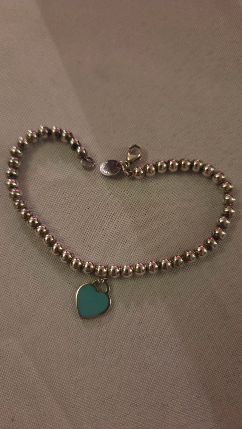This is a Tiffany & Co. bead bracelet. It features a heart tag. It's in great condition never worn