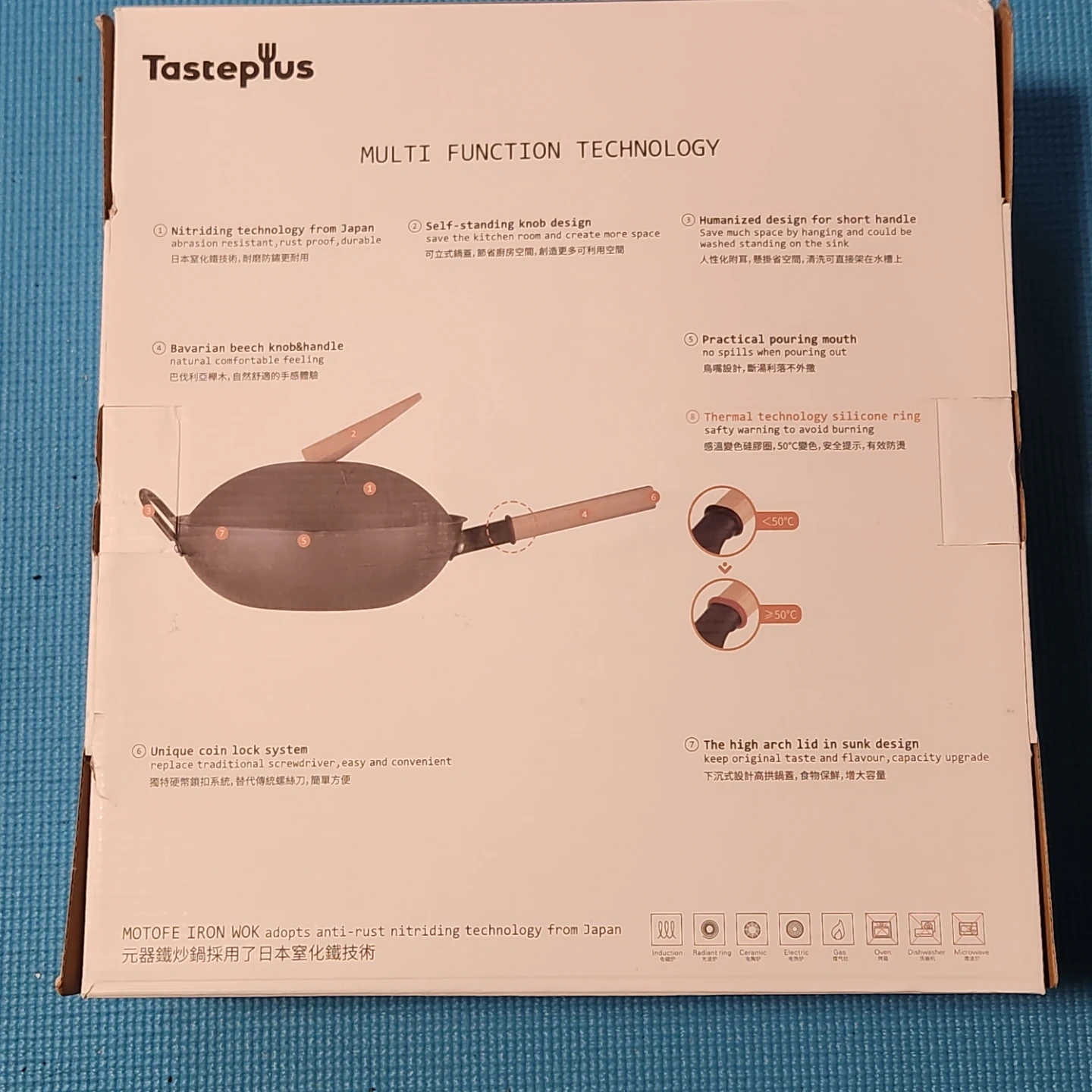 Selling a brand new Tasteplus MotoFe 32cm iron wok, still in its original box! This wok features anti-rust nitriding technology from Japan. It has a multi-function design to save kitchen space and a humanized design for a short handle. The wok also features a practical pouring mouth to avoid spills and a thermal technology silicone ring. It's a great addition to any kitchen!