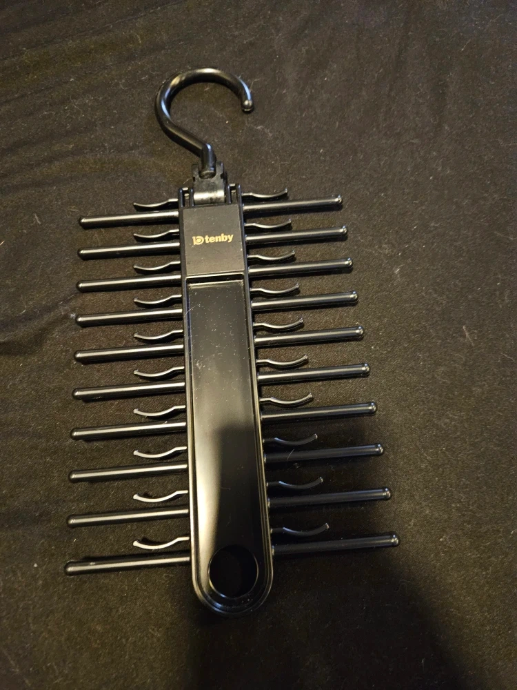 Keep your ties organized with this Tenby tie rack! It's in great condition and ready to help declutter your closet. This rack is black and has multiple bars for holding ties neatly.