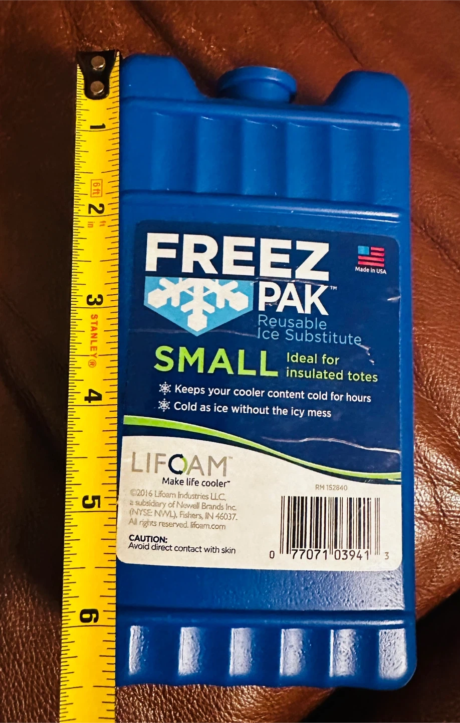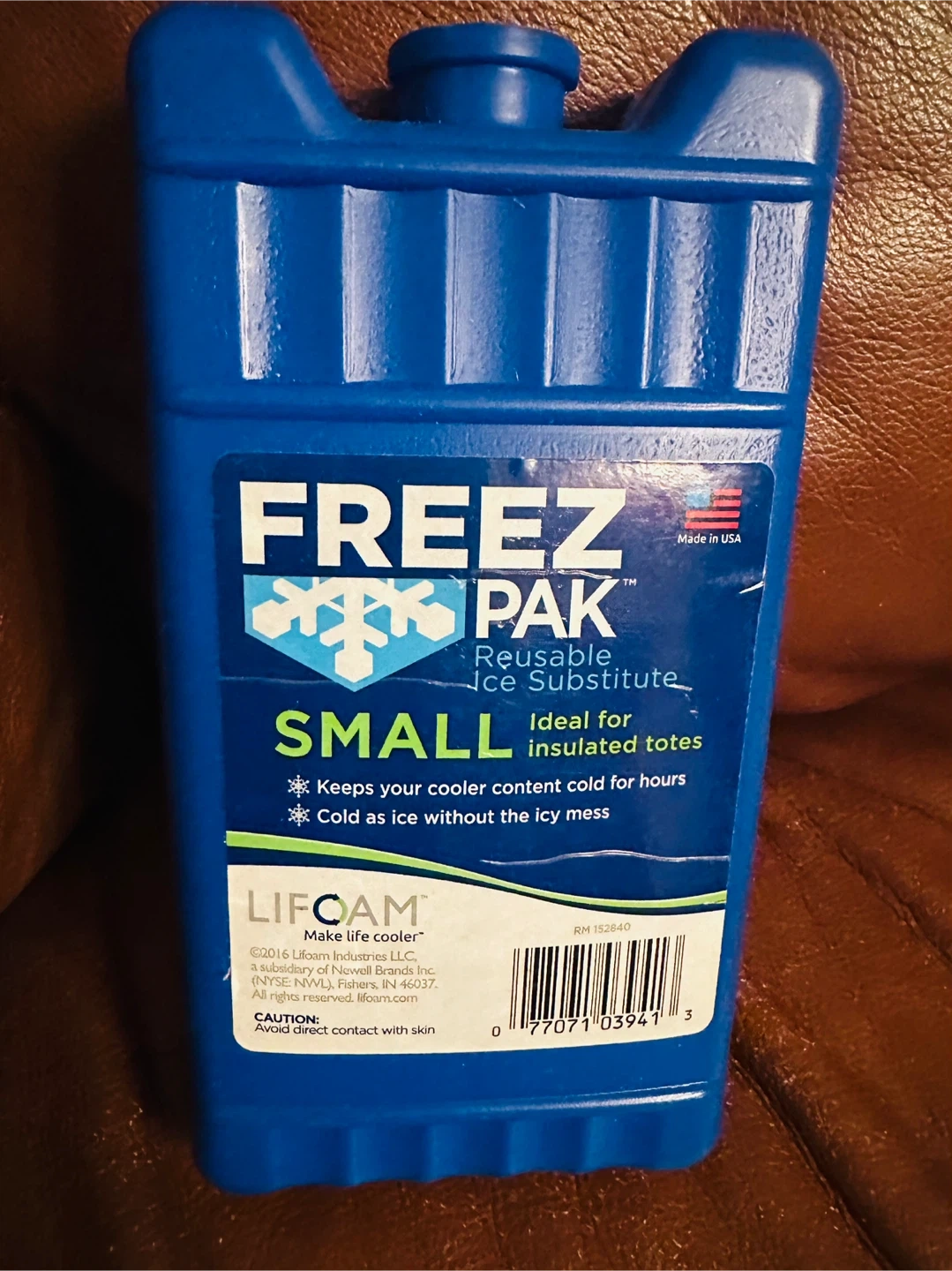 This is a small FREEZ PAK reusable ice substitute. It's ideal for insulated totes and keeps your cooler content cold for hours. Made in USA.