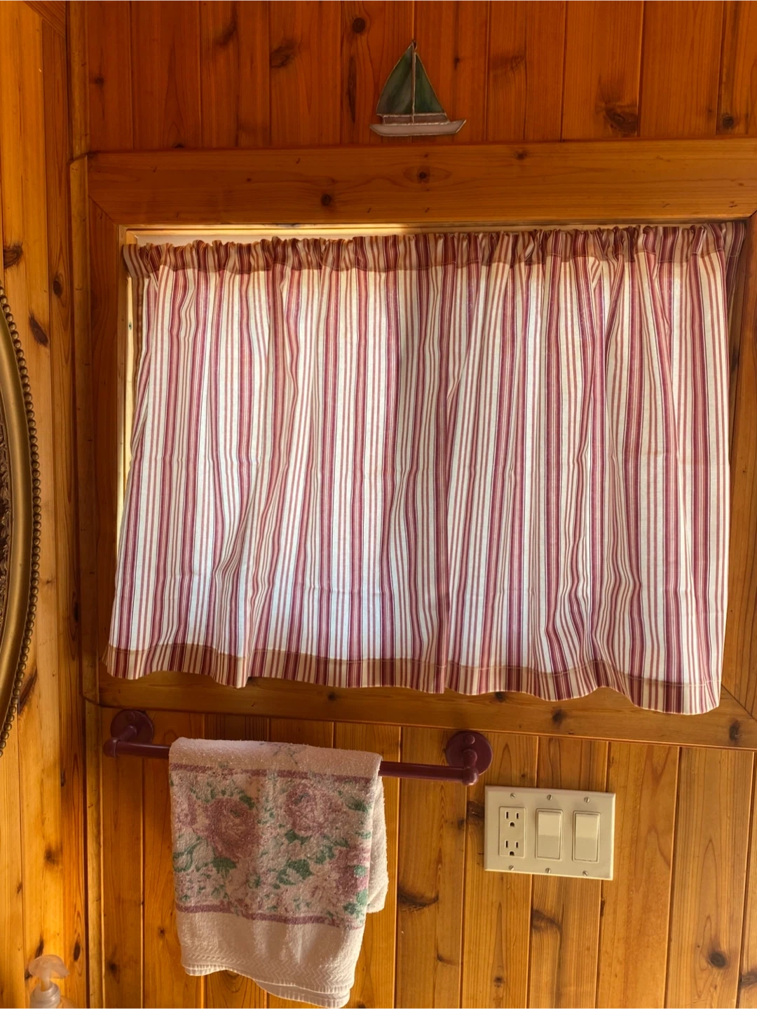 These curtains feature a classic red and white stripe pattern. They're designed to fit a small window. Perfect for adding a touch of charm. Fits any window from 28 to 48 inches wide.