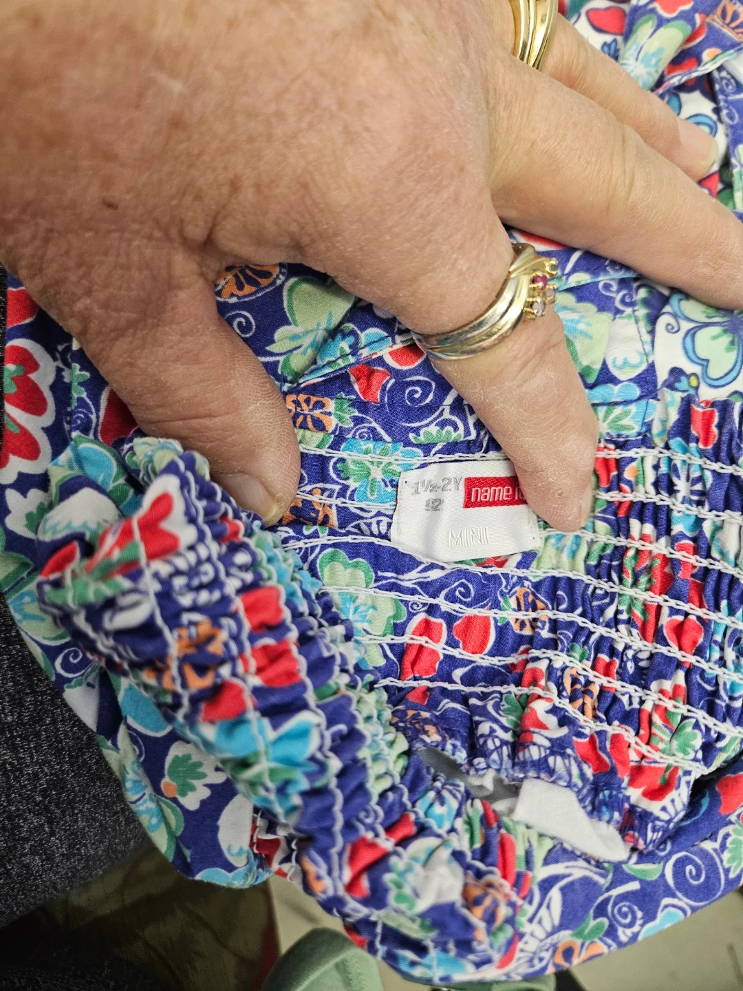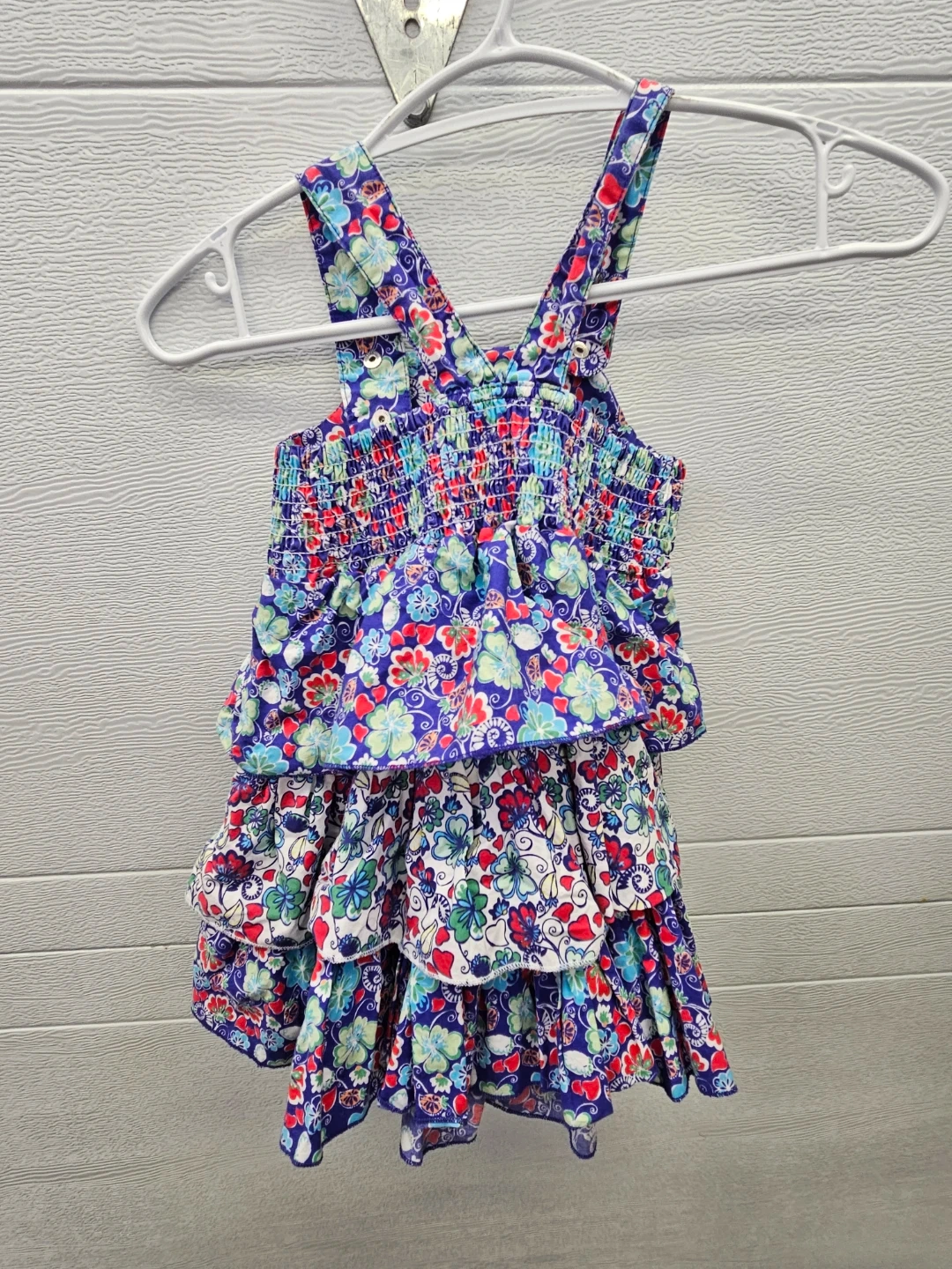 This Name Mini dress features a colourful floral print with ruffles. It has a smocked bodice and ruffled tiers. Size is 1½-2Y.