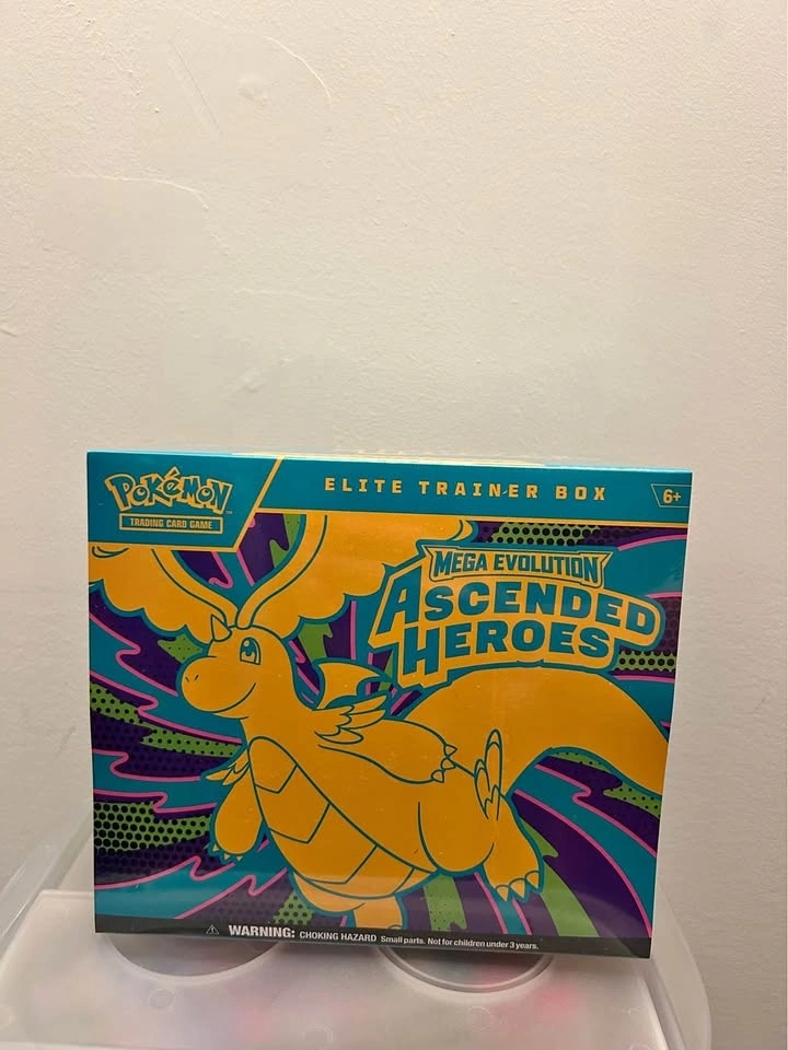 New sealed Pokemon Trading Card Game Elite Trainer Box. This is the Mega Evolution Ascended Heroes set. Still in original packaging, never opened.
