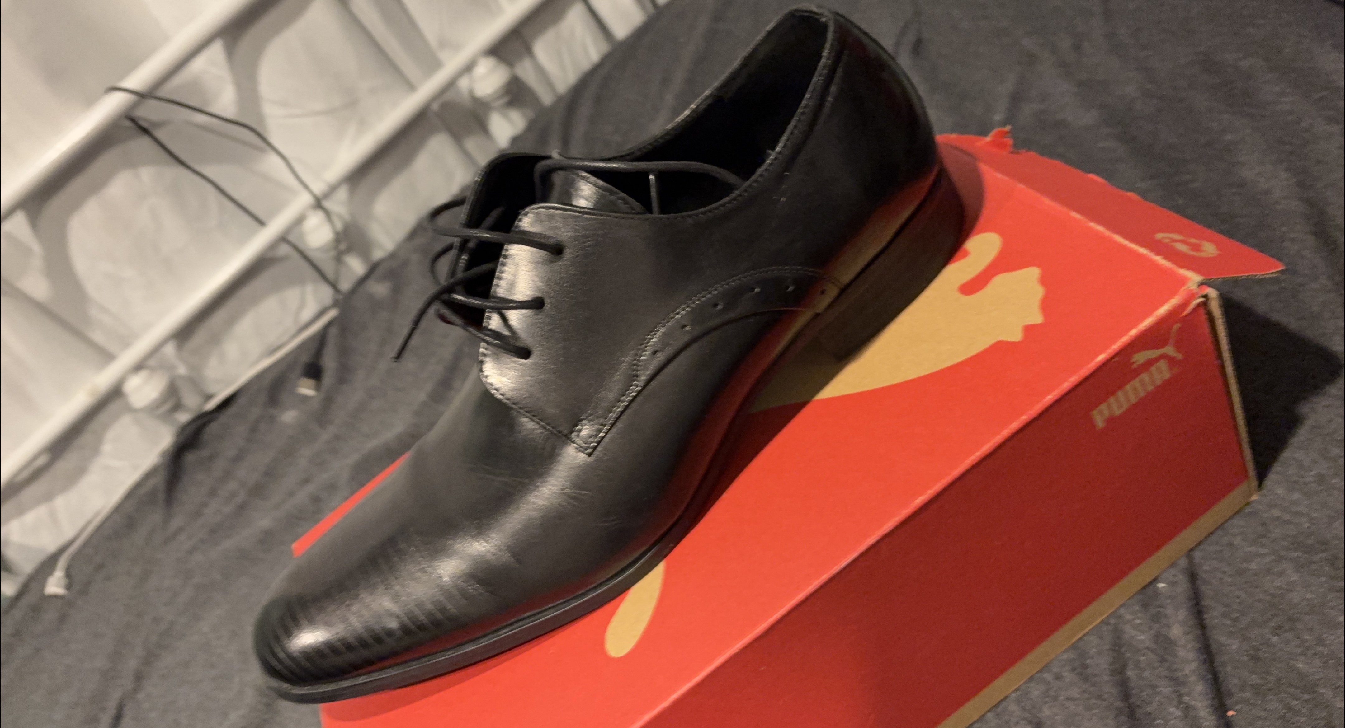 Selling a pair of black leather dress shoes by Puma! They come with the original box