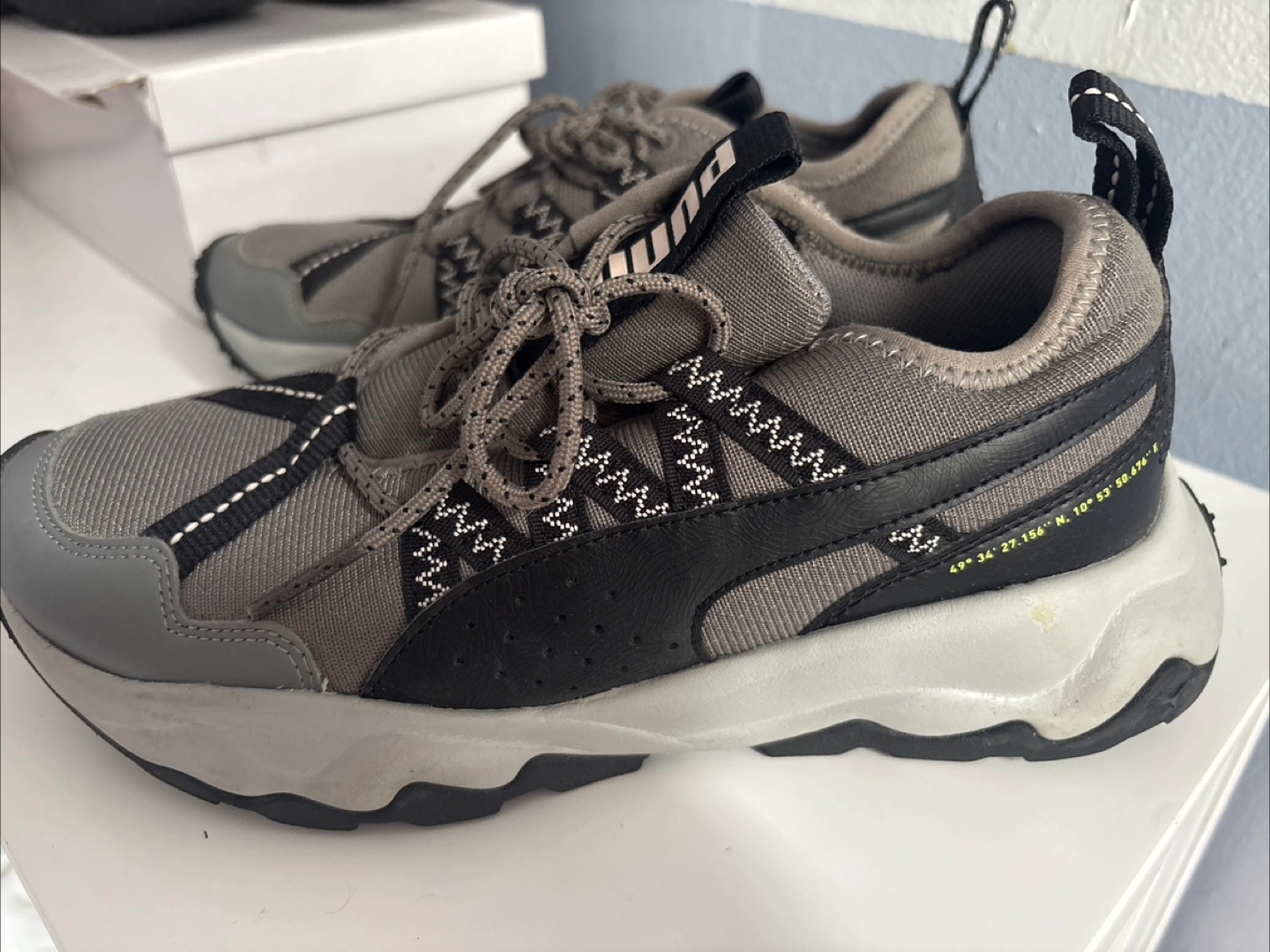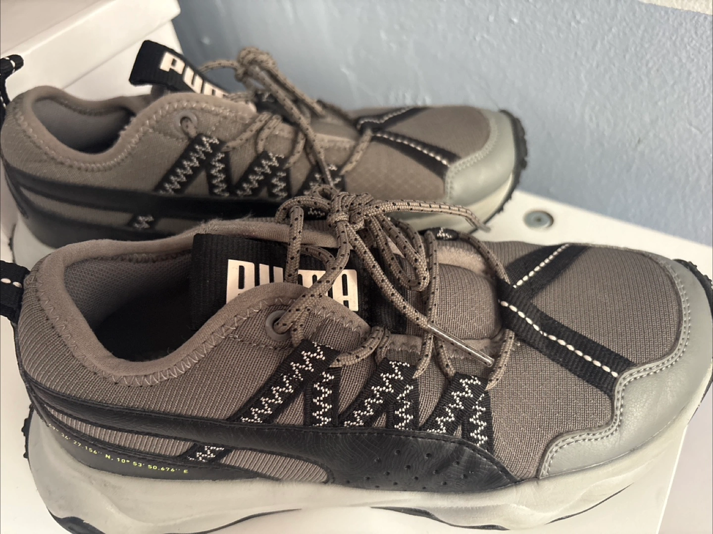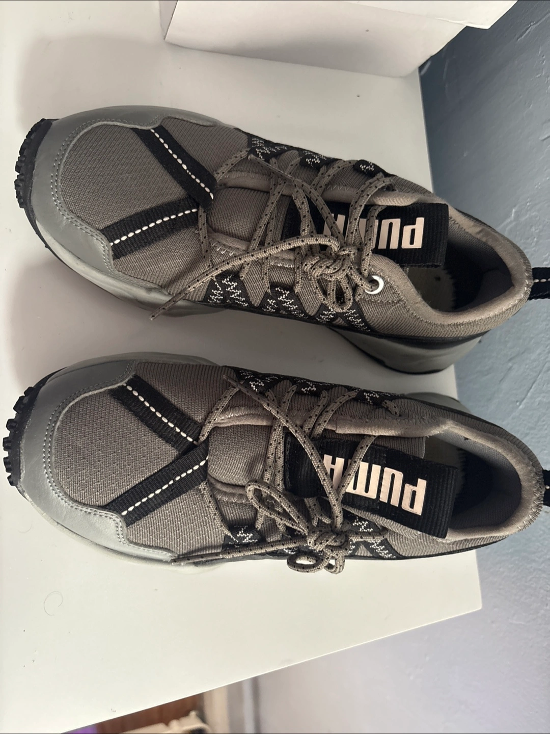 111Selling a pair of Puma Trailfox sneakers in gray and black! They're in good condition just need some padding inside.