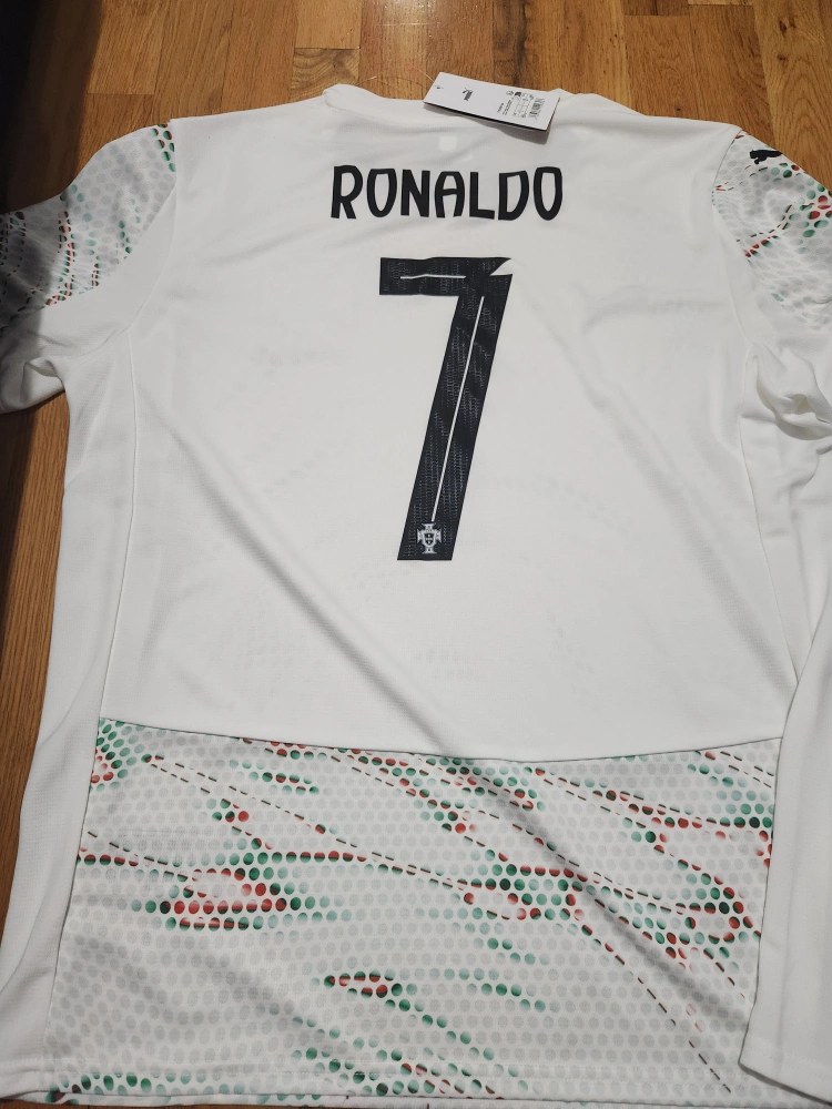 Selling a Puma Portugal Ronaldo #7 jersey! It's in new condition and ready for a new fan. The jersey features the iconic number 7 with Ronaldo's name on the back. Perfect for showing your support for Portugal's national team