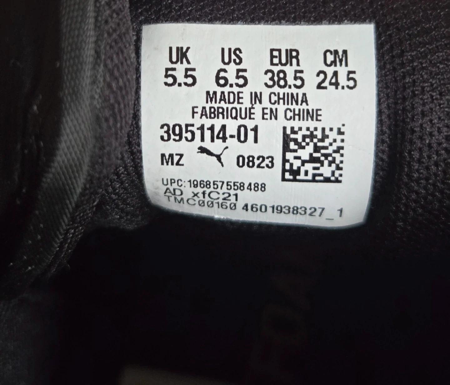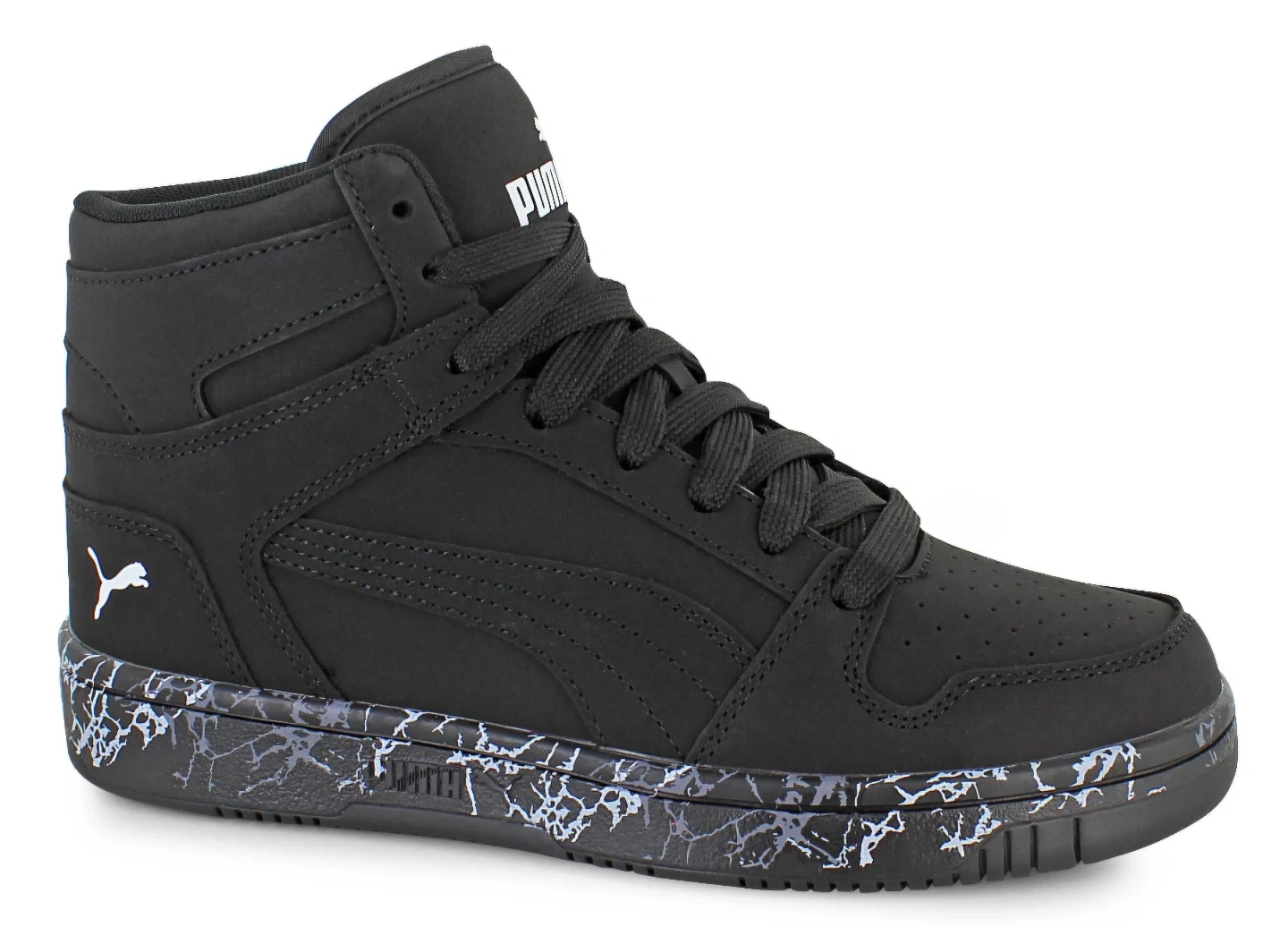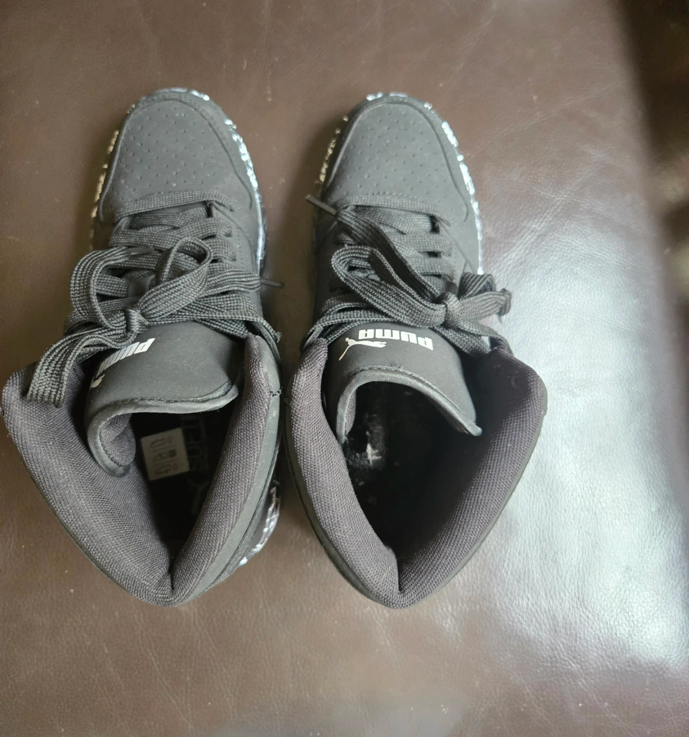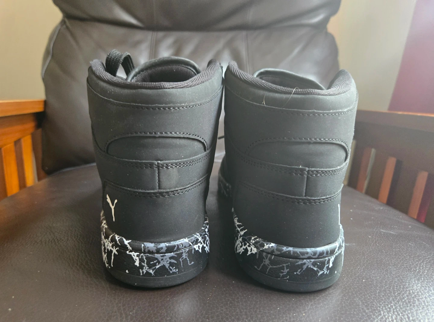 10Description: Step up your style with these PUMA Rebound Layup Mid SoftFoam+ sneakers in black with a white marble-effect sole. They’ve only been worn twice, and are still in excellent condition! These high-top sneakers feature SoftFoam+ cushioning for extra comfort, a durable rubber outsole, and PUMA’s iconic side formstrip — perfect for casual looks or everyday wear. Brand: PUMA Model: Rebound Layup Mid SoftFoam+ Color: Black with White Marble Sole Size: US 6.5 (UK 5.5 / EU 38.5 / 24.5 CM) Condition: Pre-owned – worn twice, very clean Material: Synthetic leather upper, cushioned insole Style Code: 395114-01 Classic sporty look with everyday comfort and style.
