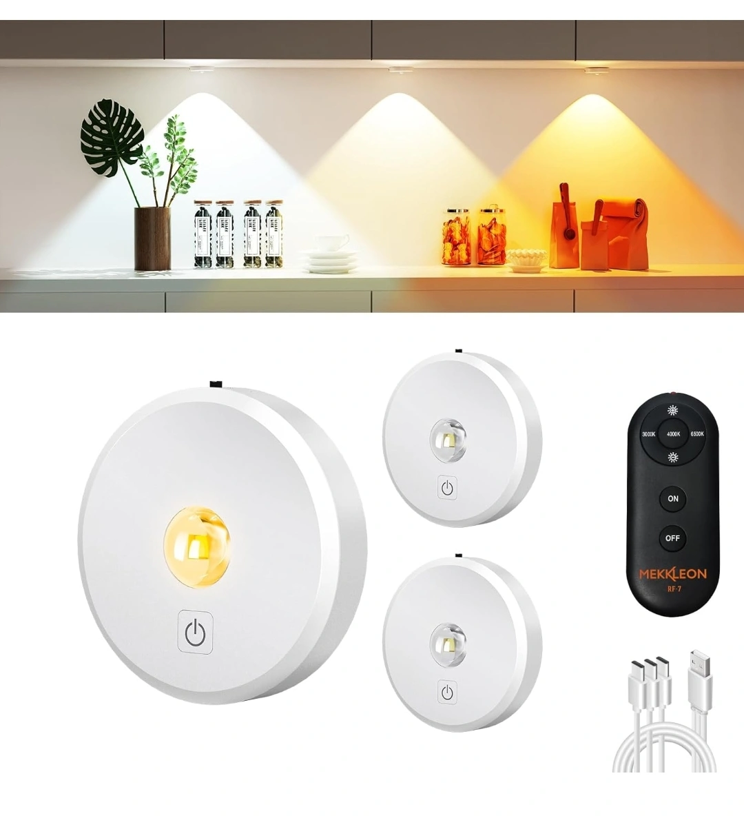 Rechargeable Puck Lights with Remote - Dimmable, 3-Pack