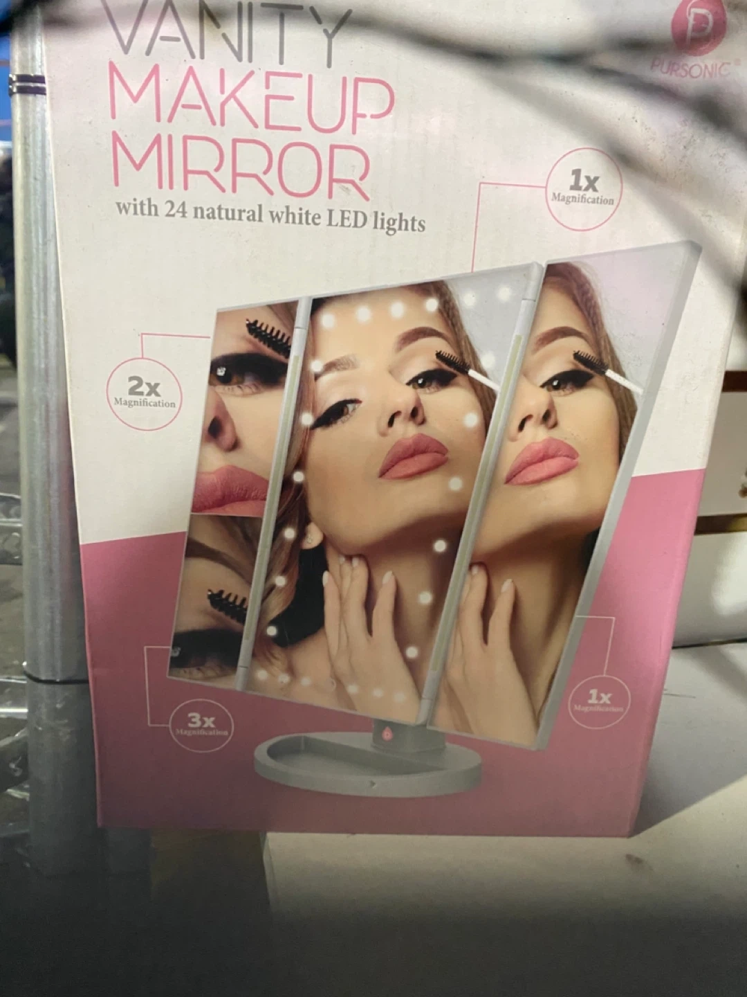65Selling a vanity makeup mirror by Pursonic! It comes with 24 natural white LED lights. It also has 1x, 2x, and 3x magnification options, so you can always get the perfect view
