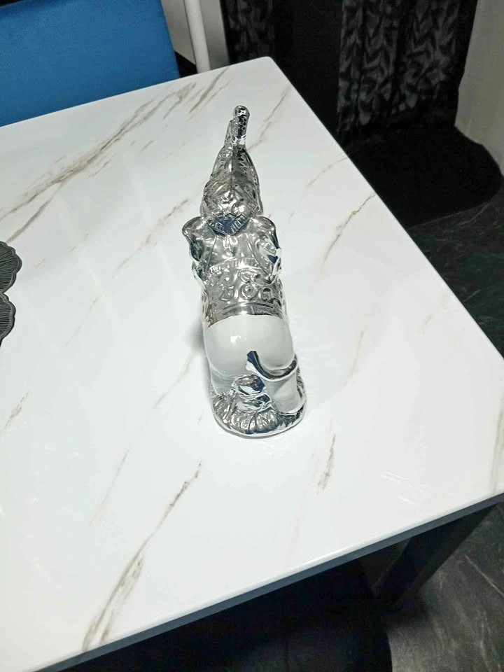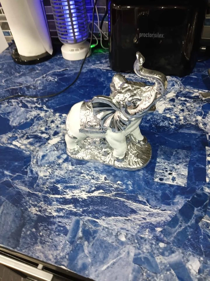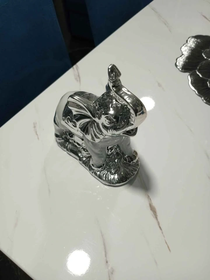 This is a lovely ceramic elephant, perfect for adding a touch of elegance to your home decor. It features a beautiful silver and white finish. Feel free to message if you have any questions!