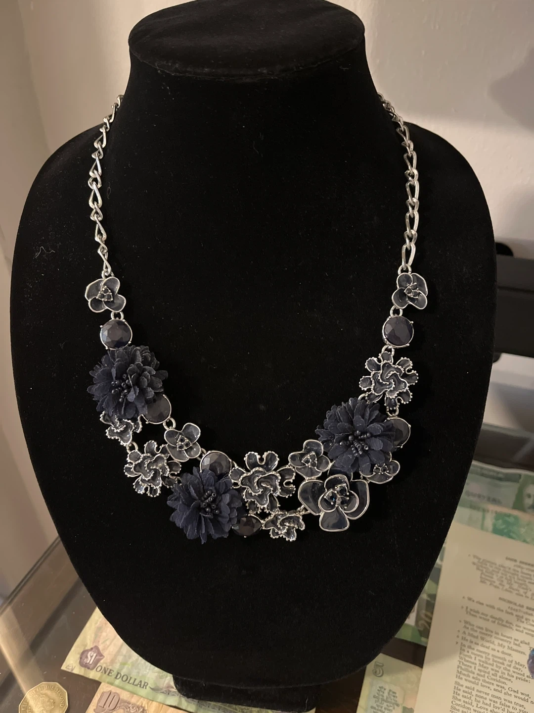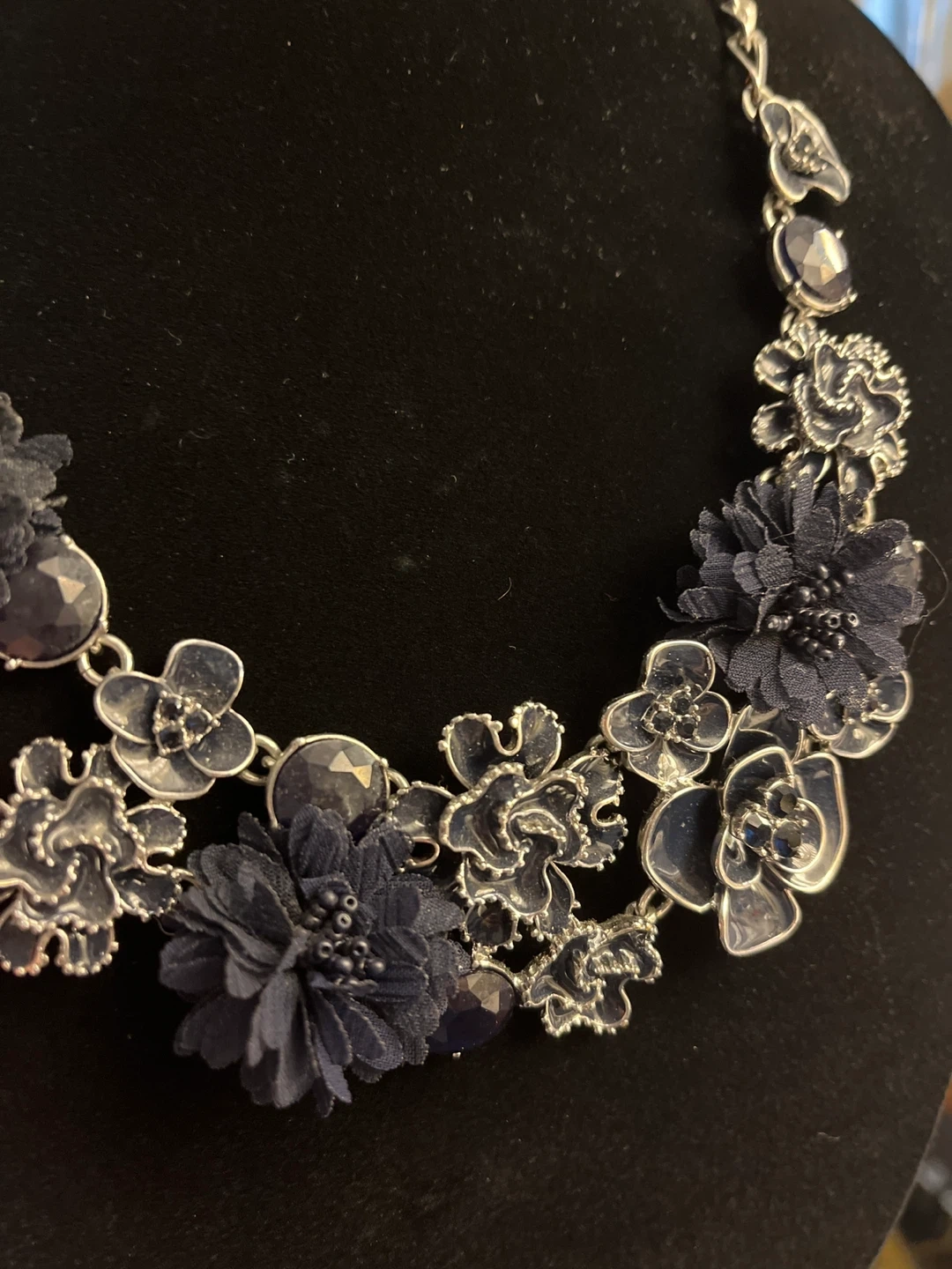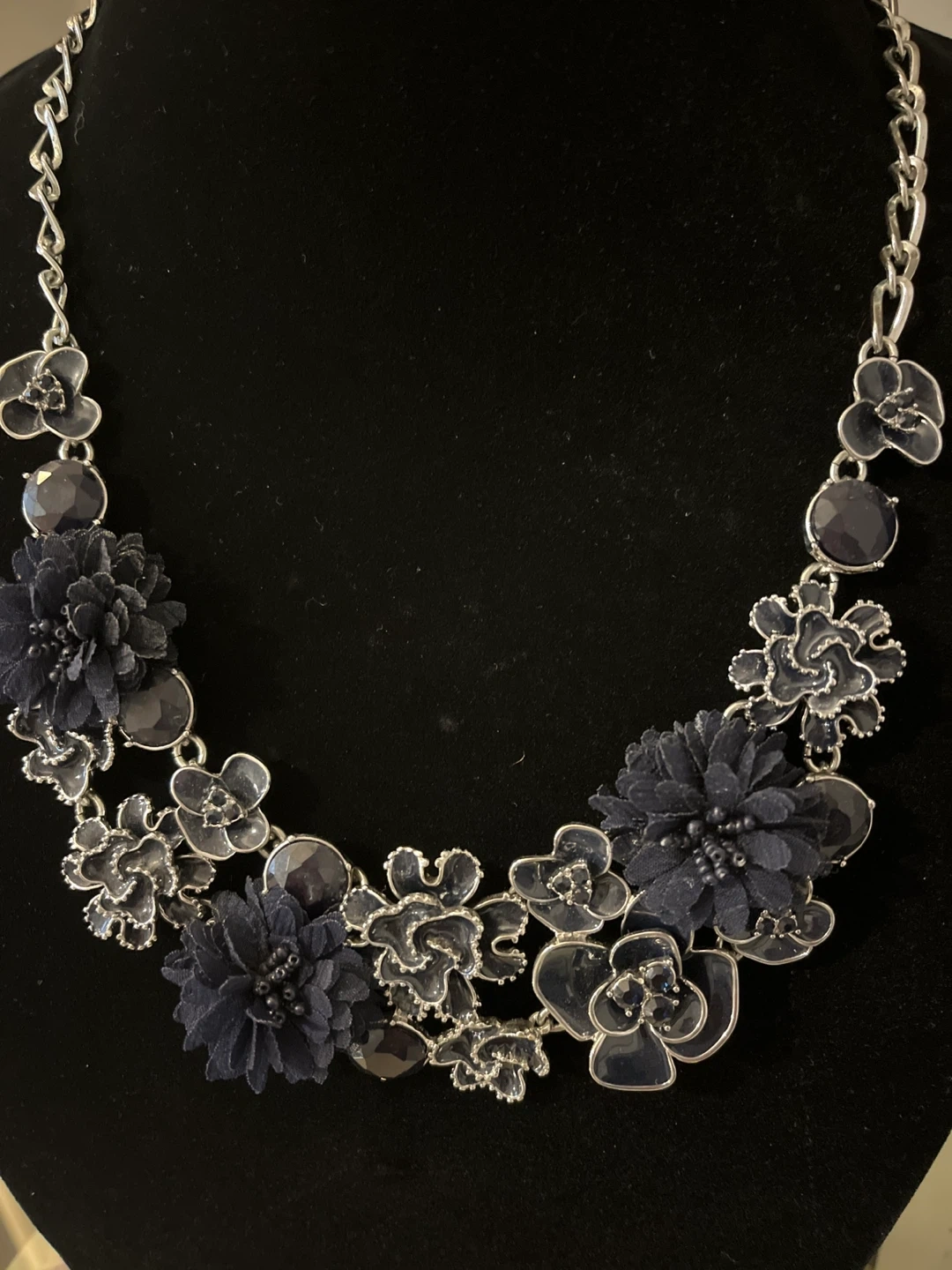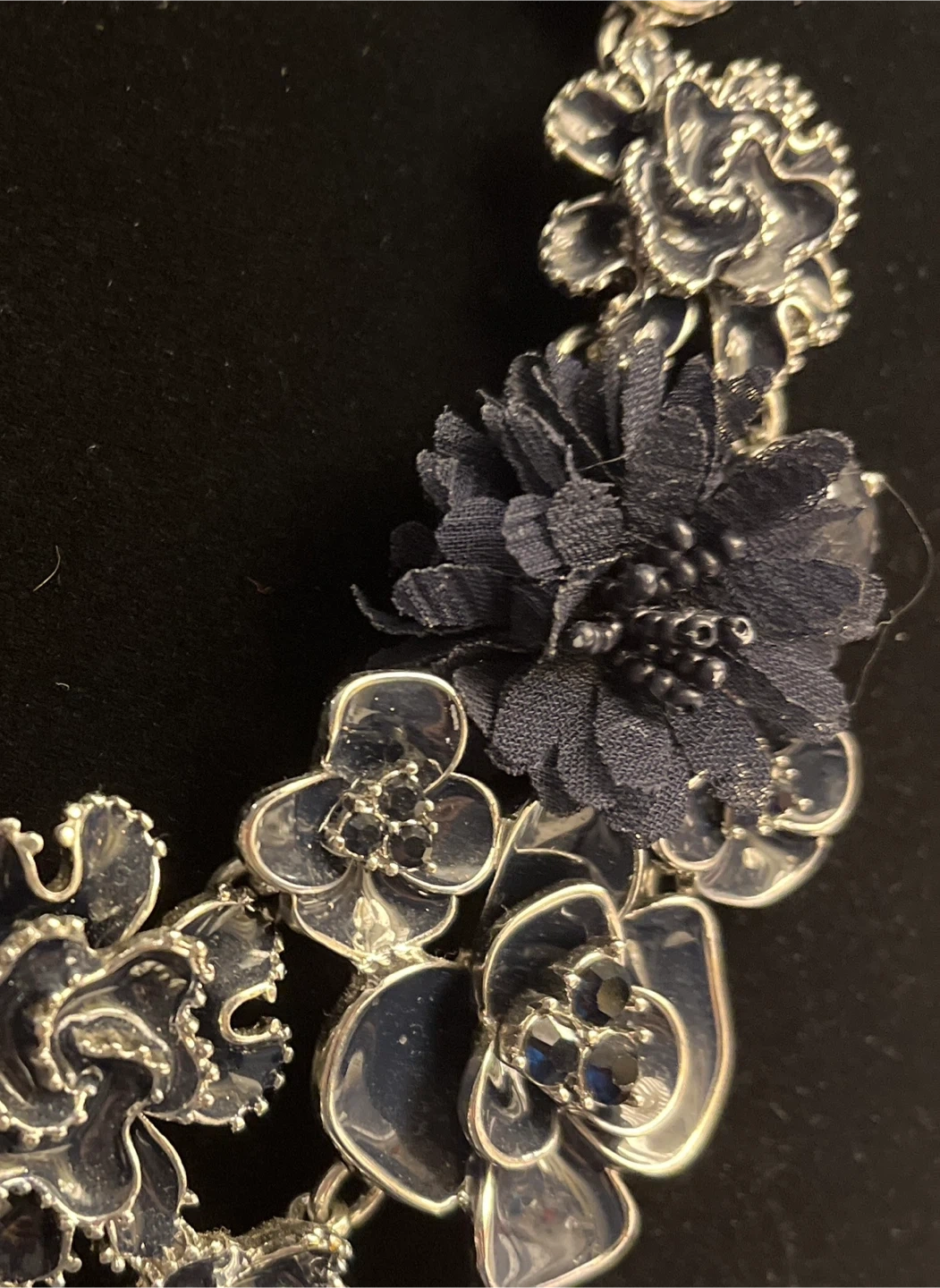 Talbots Navy Blue Chunky Floral Statement Necklace