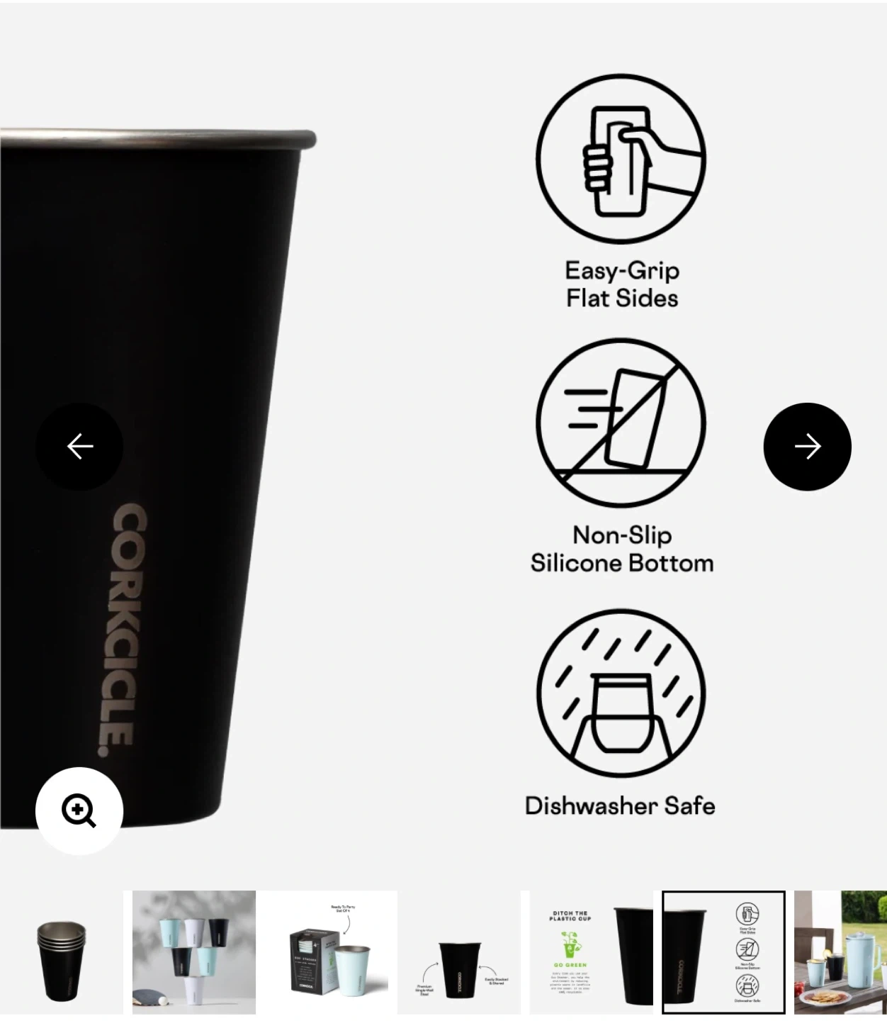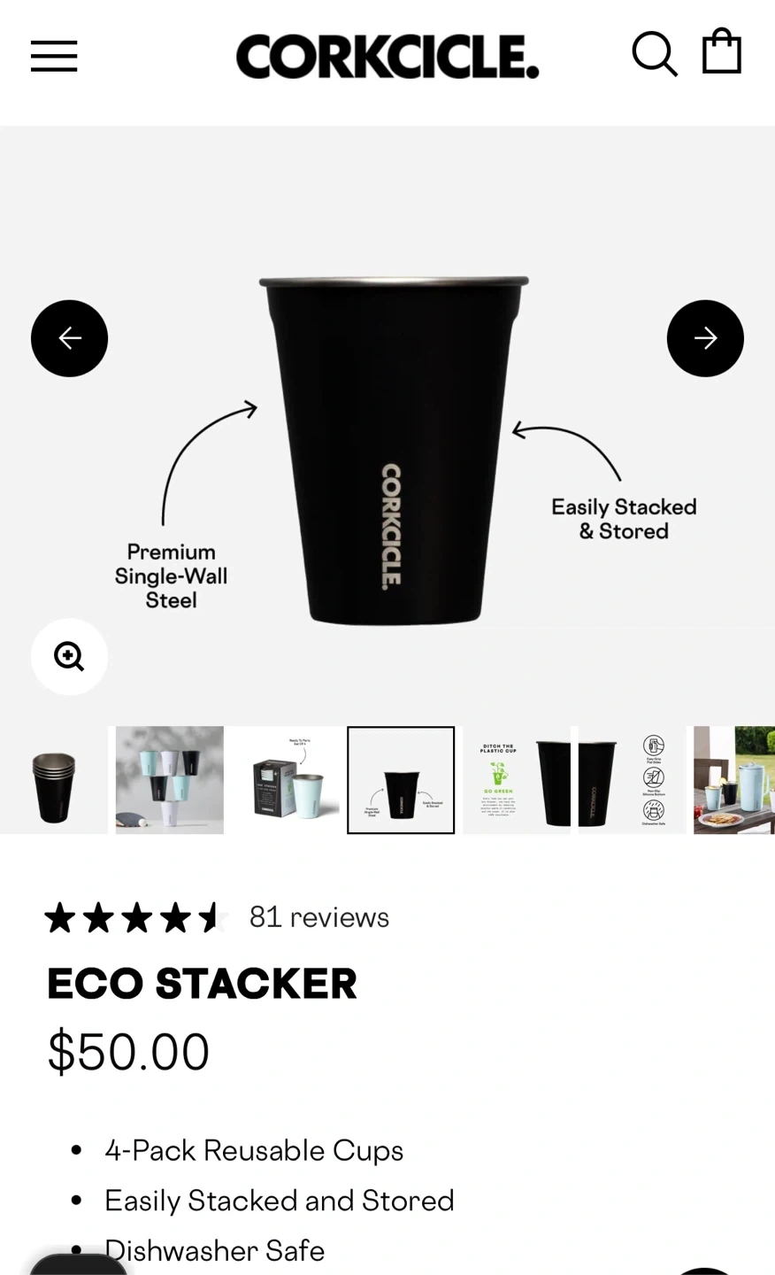 This is a 2-pack of Corkcicle Eco Stacker reusable cups. They're made of premium single-wall steel and are dishwasher safe. These cups are designed for easy stacking and storage.