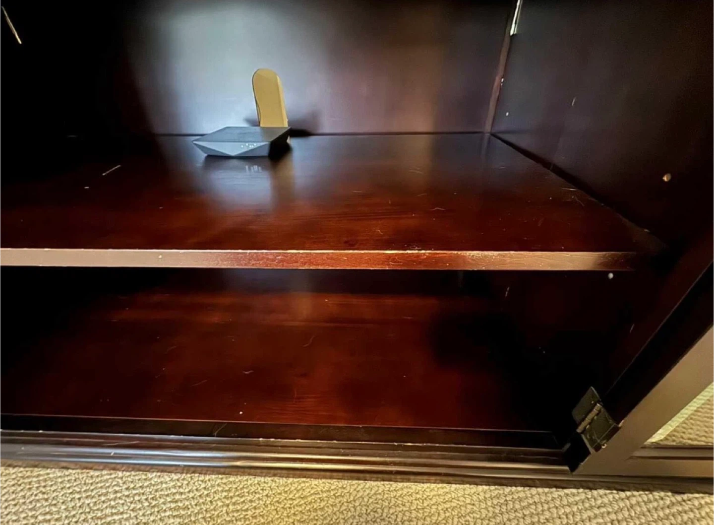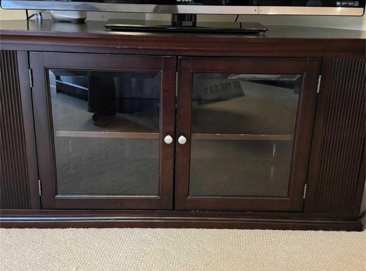 Measures 62” wide x 20 “ deep x 23” tall. There is a scratch on the inner shelf (see picture). Must be able to pickup. Cash only.