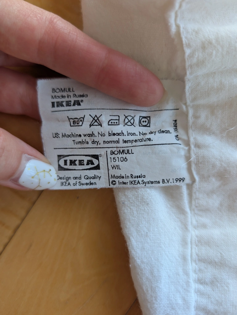 Giving away a white curtain panel from IKEA. The tag indicates it's the BOMULL model. It's in good condition and ready to add a simple, clean look to any room.