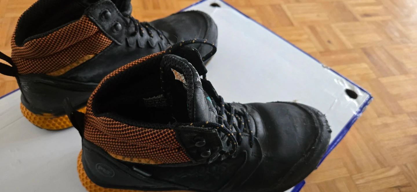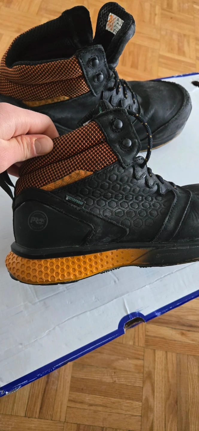 Selling a pair of Timberland PRO work boots in black. They show some signs of wear, but are still functional and ready for tough jobs. They are waterproof so they're great for working outdoors!