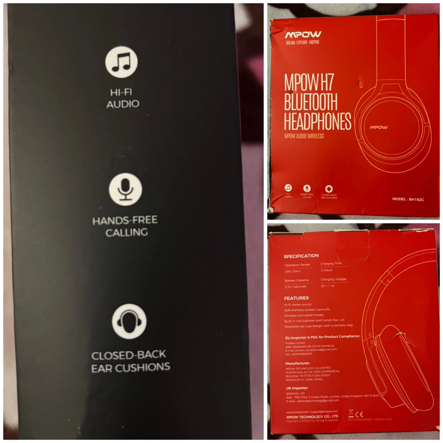 For sale is a MPOW H7 Bluetooth headphone that offers Hi-Fi stereo sound and hands-free calling. It features soft memory-protein earmuffs, a rotatable ear cup design, and a portable bag. Supports wireless and wired modes.