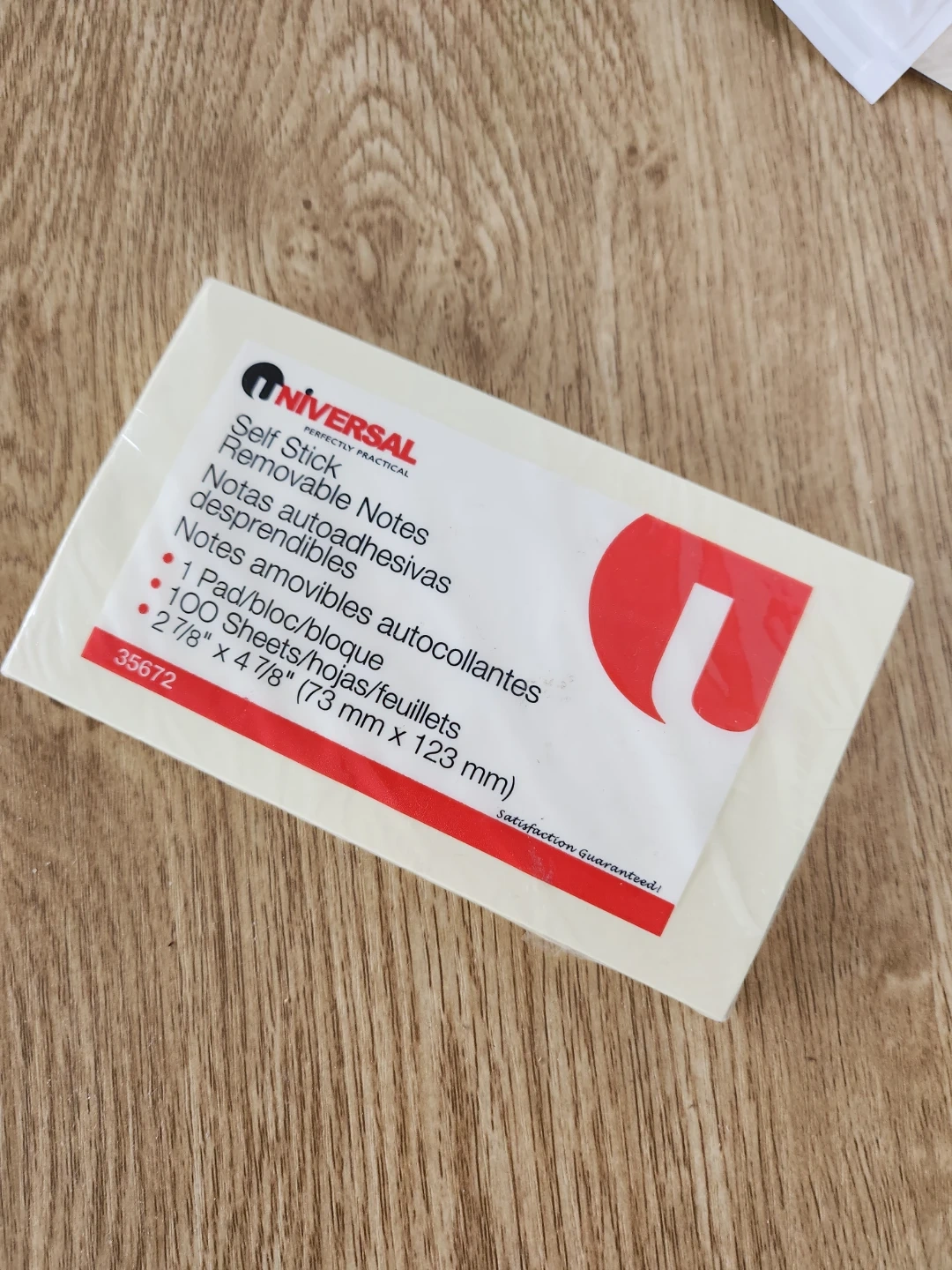 This is a pack of Universal Self Stick Removable Notes. Each pad contains 100 sheets. The dimensions are 2 7/8" x 4 7/8" (73 mm x 123 mm).