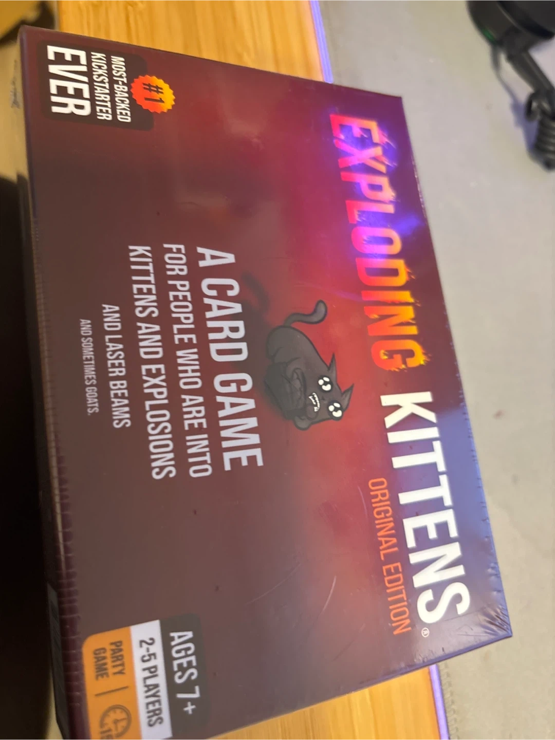 Selling a new, still-in-shrinkwrap copy of Exploding Kittens: Original Edition! It's a card game for 2-5 players, ages 7+. This is the original edition that was a Kickstarter hit. Get ready for some kittens, explosions, and laser beams!