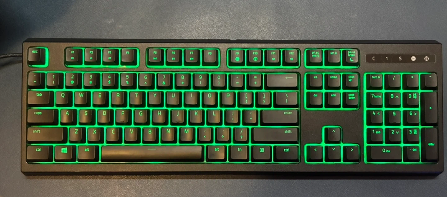 Keyboard itself is in great condition while the wrist rest is in used condition.