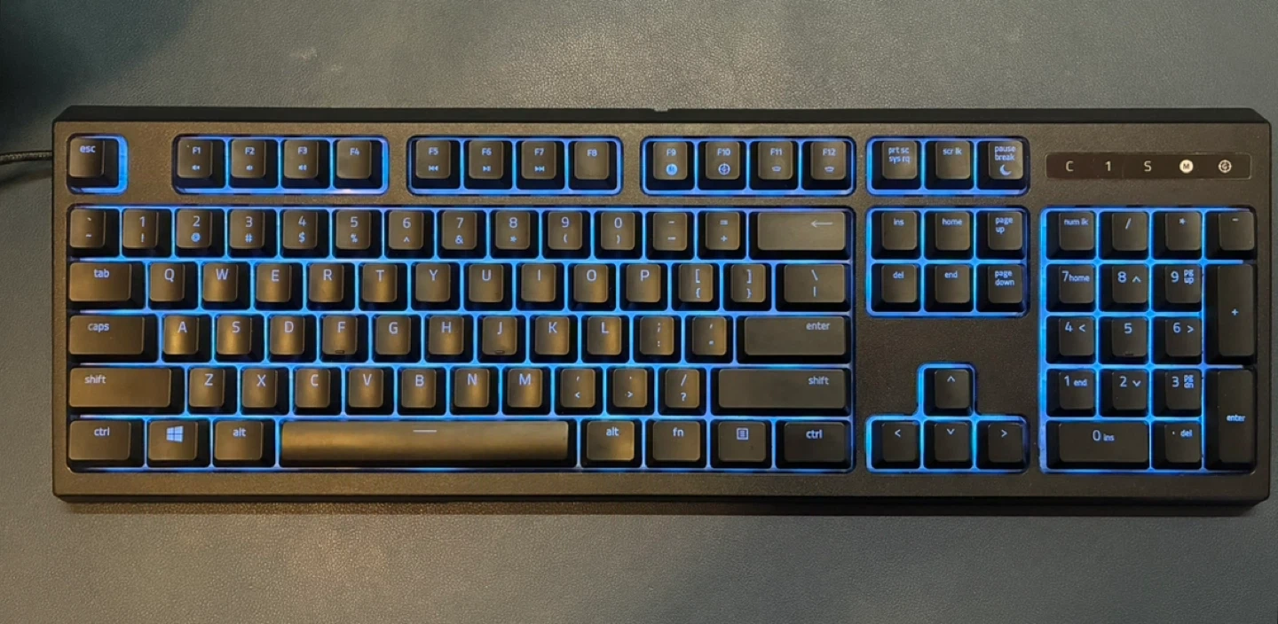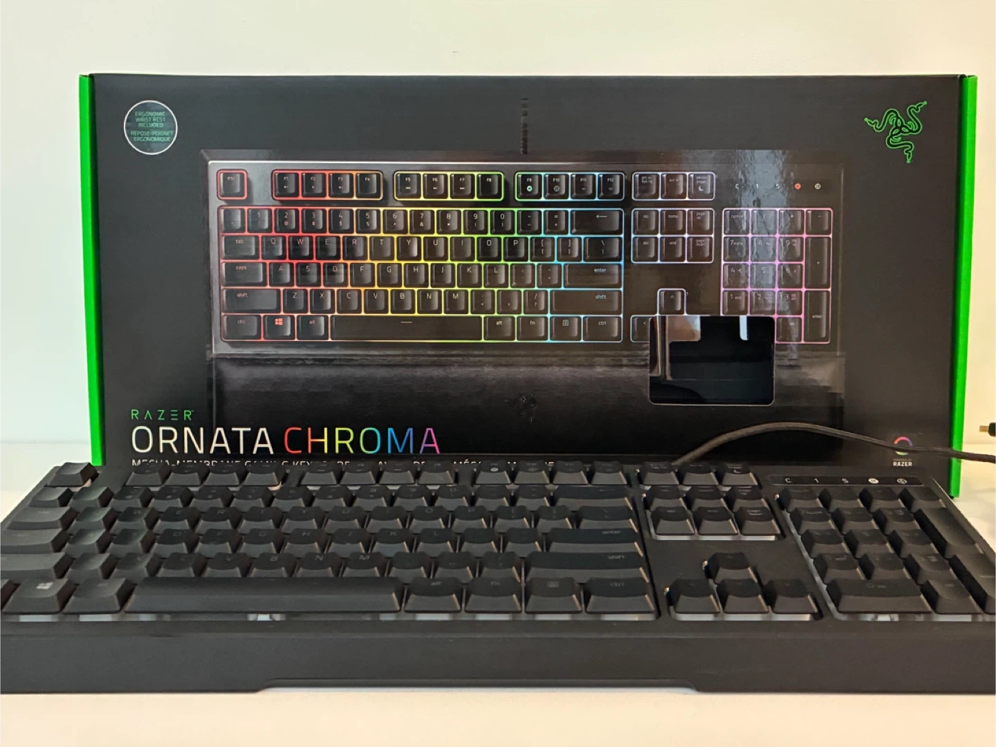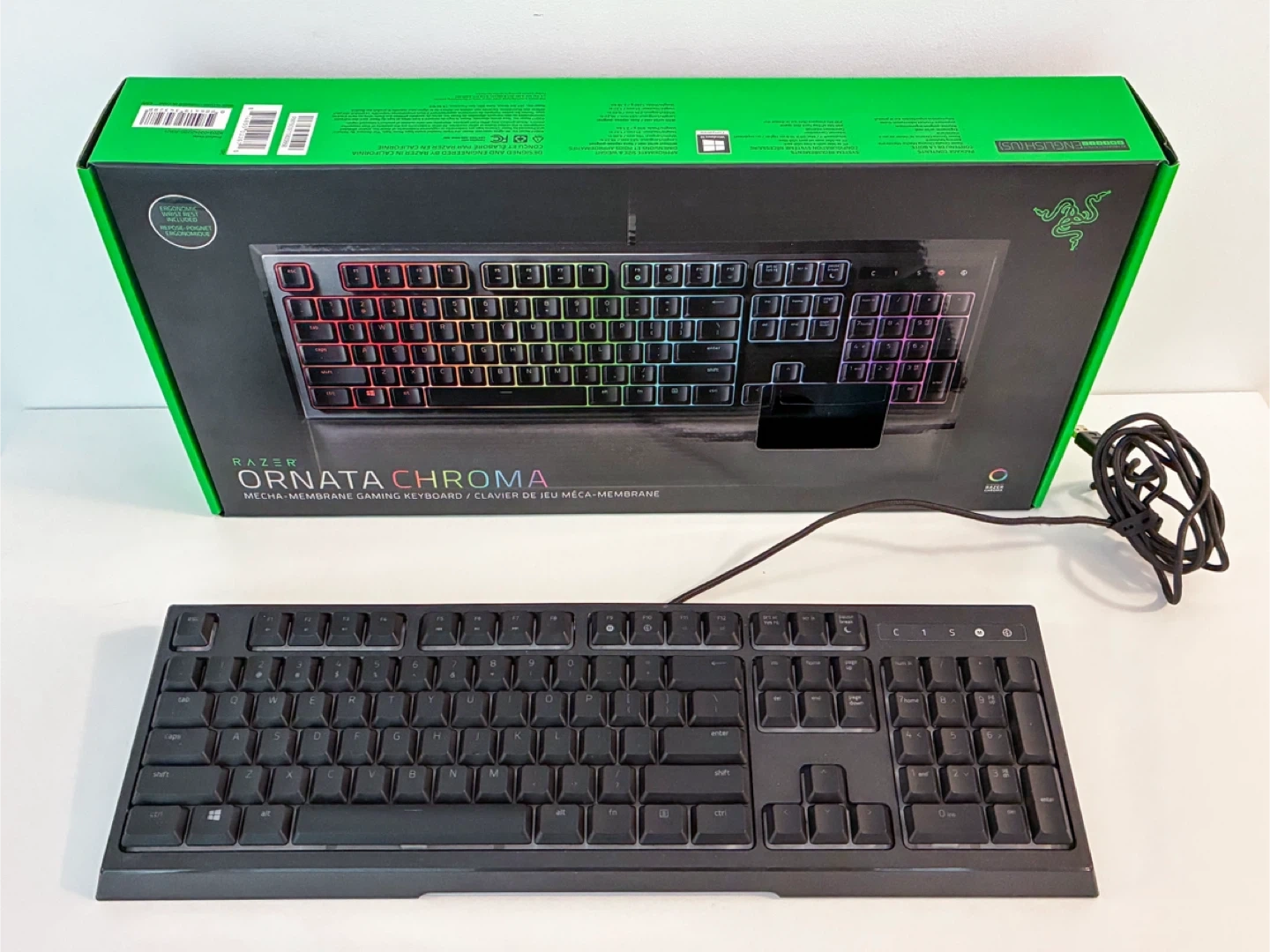 Selling a Razer Ornata Chroma Gaming Keyboard. It features customizable RGB backlighting in various colours. The keyboard has a standard QWERTY layout with a full numeric keypad.