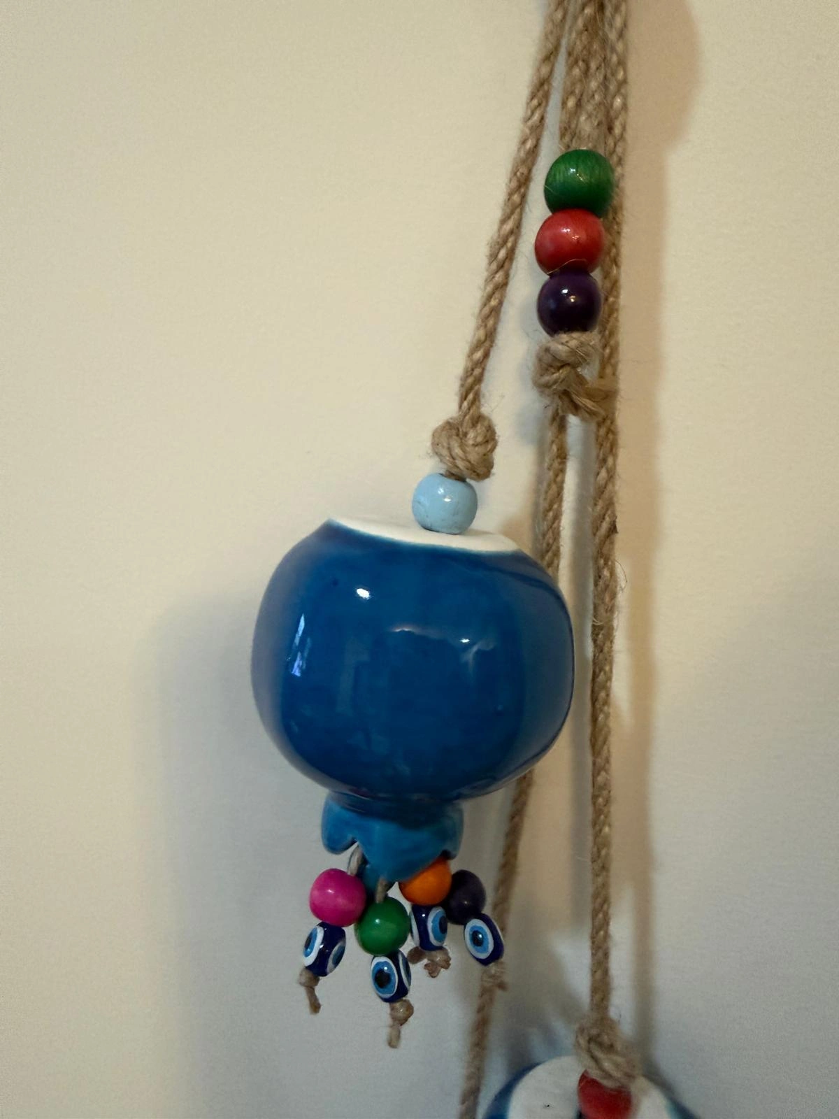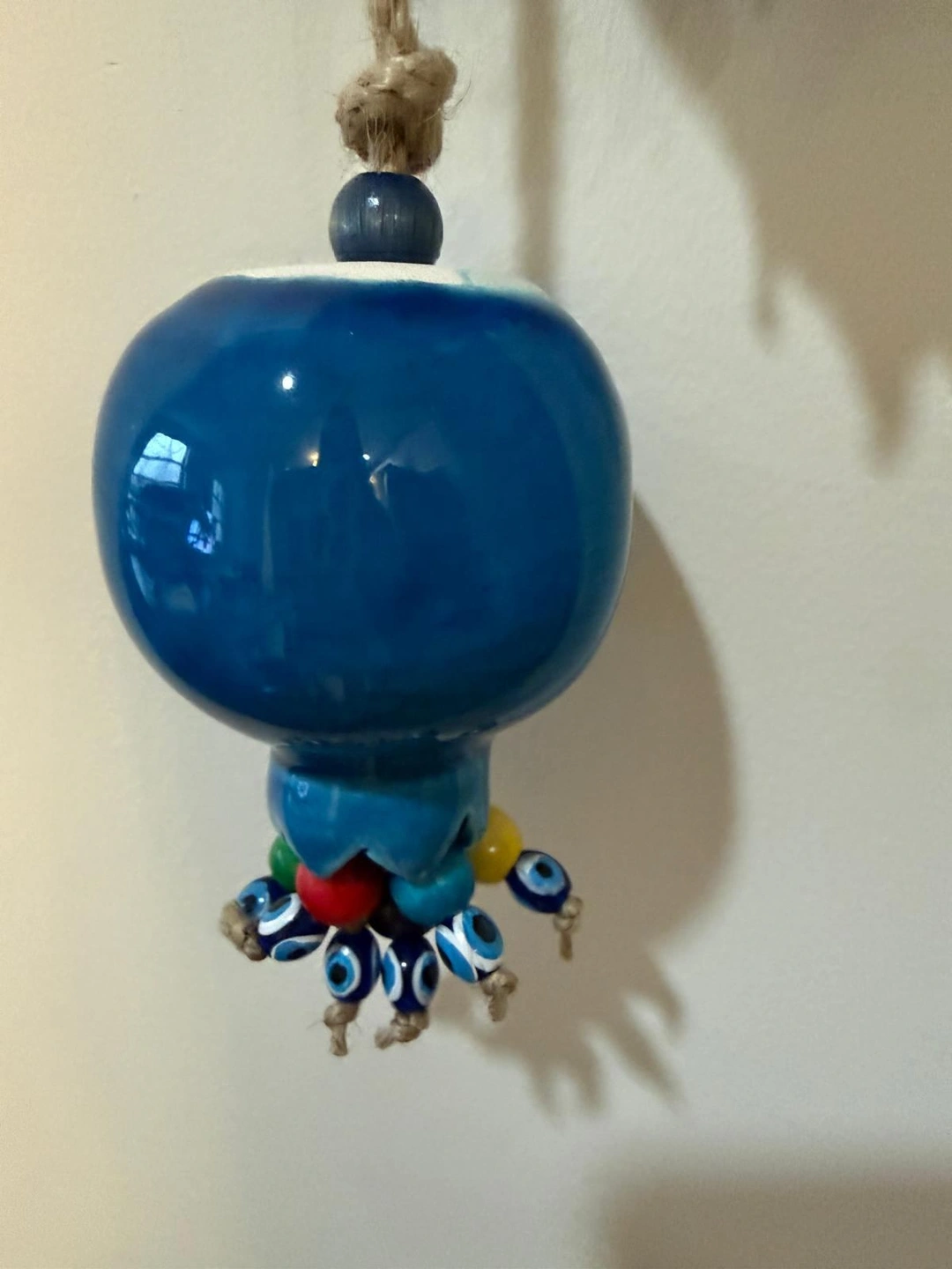This beautiful handmade decoration combines the symbolic power of the pomegranate and the evil eye, bringing both beauty and meaning into your home.