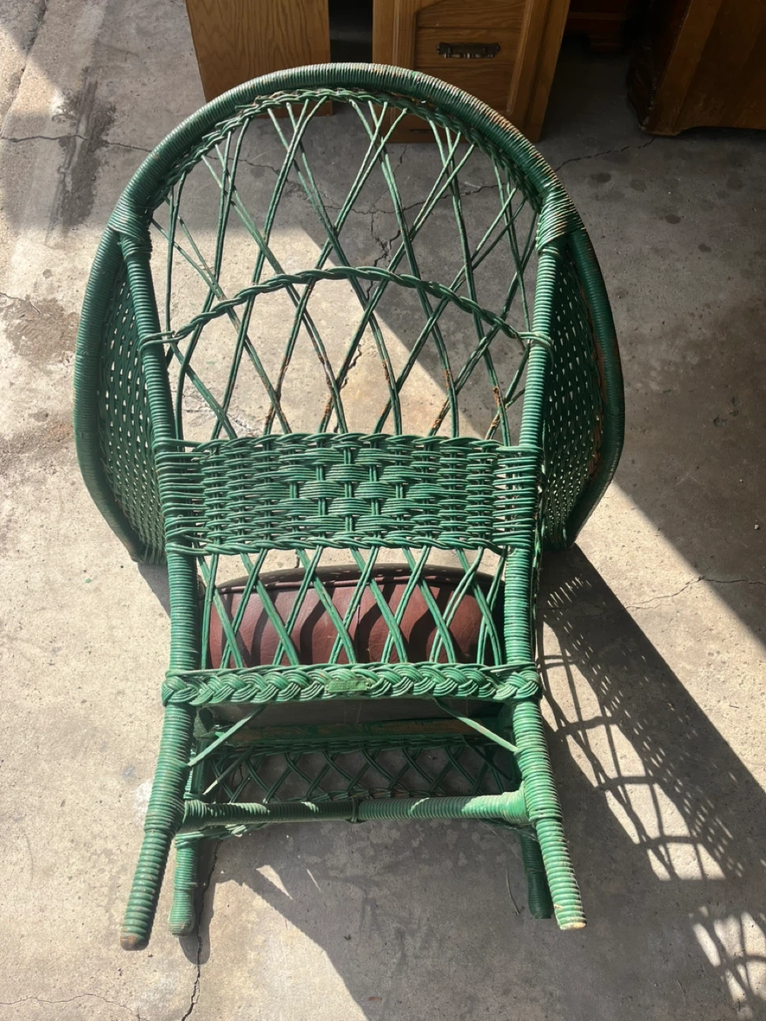 Selling a vintage matching wicker loveseat (3 seat) and chair! Each features a green wicker frame and brown leather-like cushions. It's a unique piece that would add charm to any space. While each shows a bit of wear; these pieces are extremely well made, sturdy and ready for use. The come as is; please see the photos. Thanks!