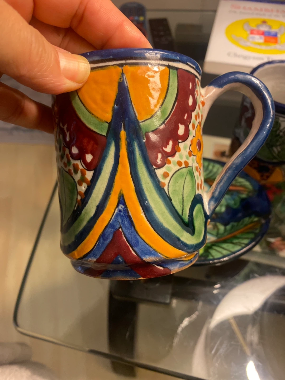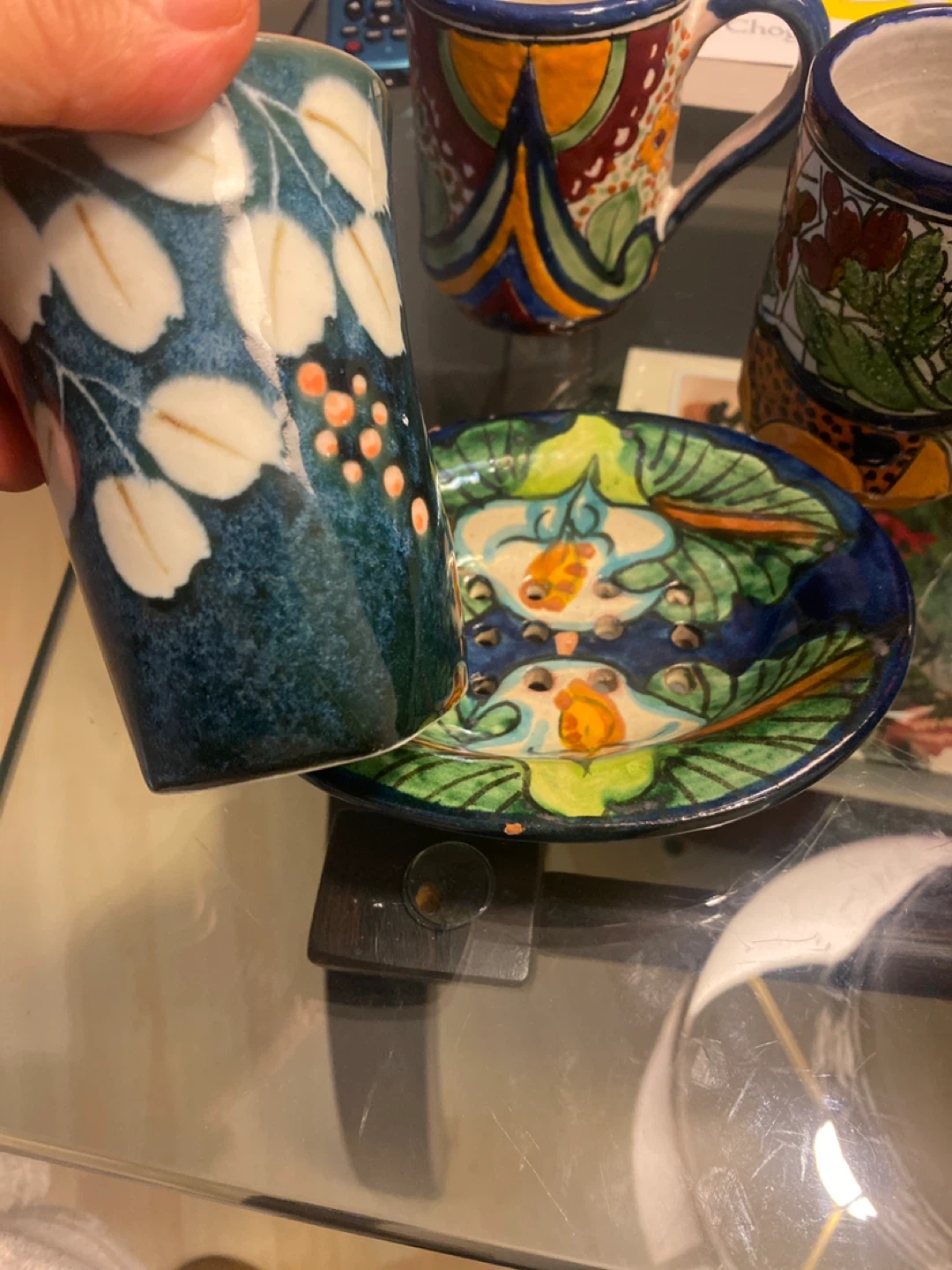 Selling some beautiful hand-painted Mexican pottery! Includes a mug, a small plate, and a cup. They're all in great condition and would look lovely in any home