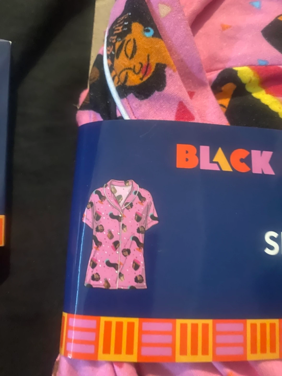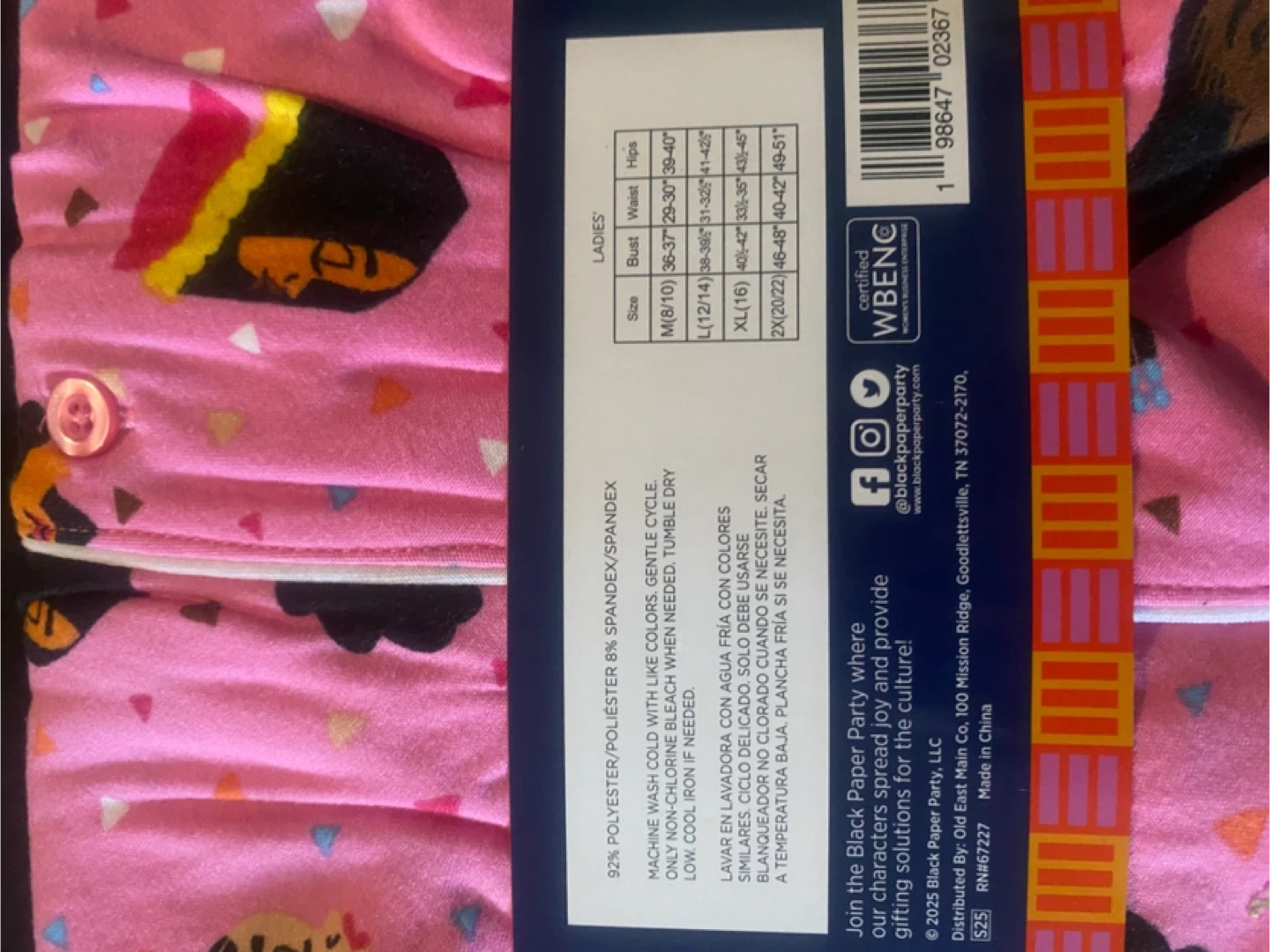This pink sleep shirt features a fun graphic print. It's made from a polyester/spandex blend. Machine wash cold with like colors gently cycle. Low cool iron if needed.