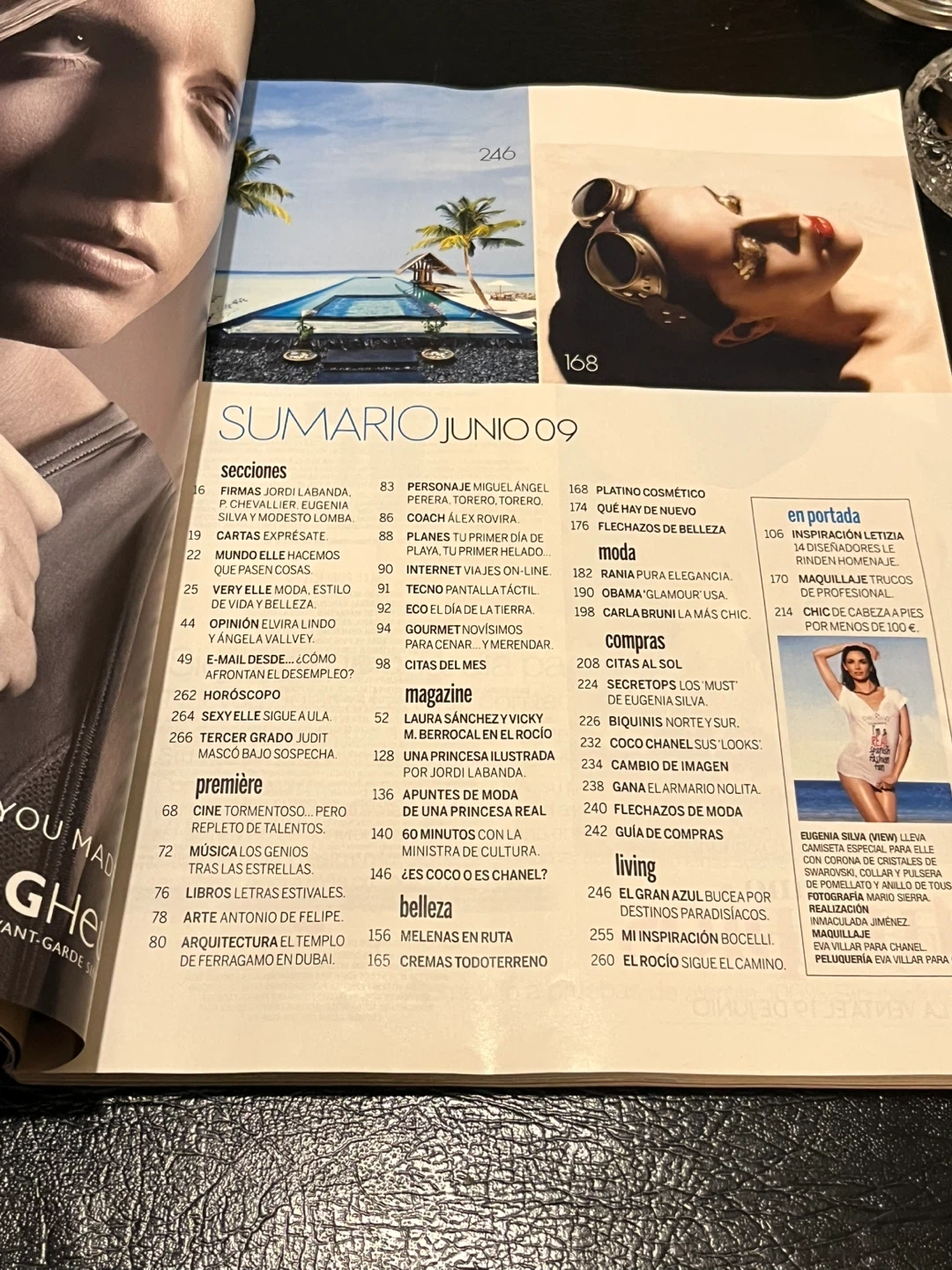 This is the June 2009 issue of ELLE magazine, featuring "Moda Espanola en Tiempo Real". It includes sections on fashion, beauty, and lifestyle. The magazine is from Spain and is the world's leading fashion magazine.