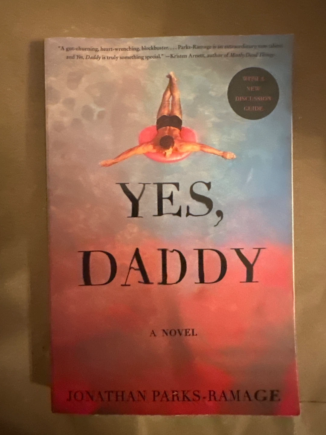 This is "Yes, Daddy," a novel by Jonathan Parks-Ramage. It includes a new discussion guide inside. It's a paperback edition.