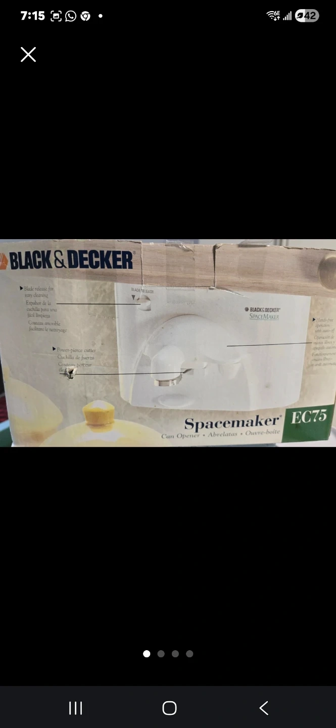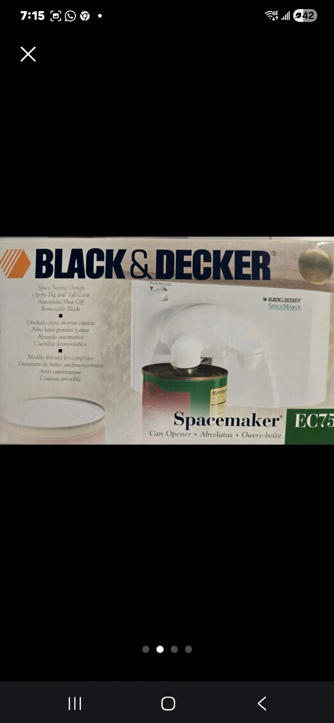 Black & Decker Spacemaker can opener. Opens big and tall cans. Features automatic arm closing and a removable blade. Blade releases for easy cleaning. It's designed for countertop use. NO RESERVATIONS!