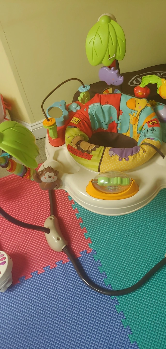 Selling a gently used baby jumper activity center. It's in great condition and ready for a new little one to enjoy! It's designed to keep your baby entertained and active with various toys and activities around the seat